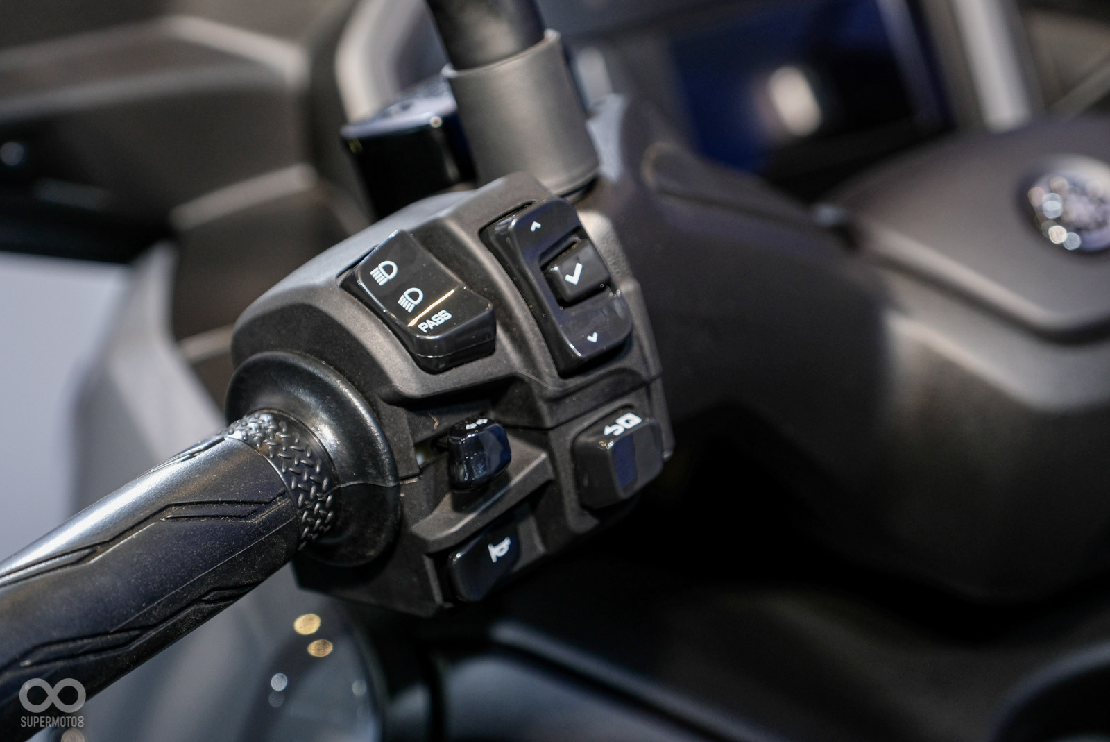 動力方面搭載292c.c. BLUE CORE水冷單缸引擎,擁有27.6匹馬力與2.9公斤米的扭力輸出,兼顧加速力與油耗表現。變速系統為CVT無段變速,搭配新一代智慧電控系統,讓起步與加速表現更滑順。懸吊採用33mm正立前叉與雙槍後避震器組合,搭配前後碟煞與ABS,提供穩定且安心的煞車效果。XMAX座高為795mm,車重為183公斤,對多數騎士來說相對親民。