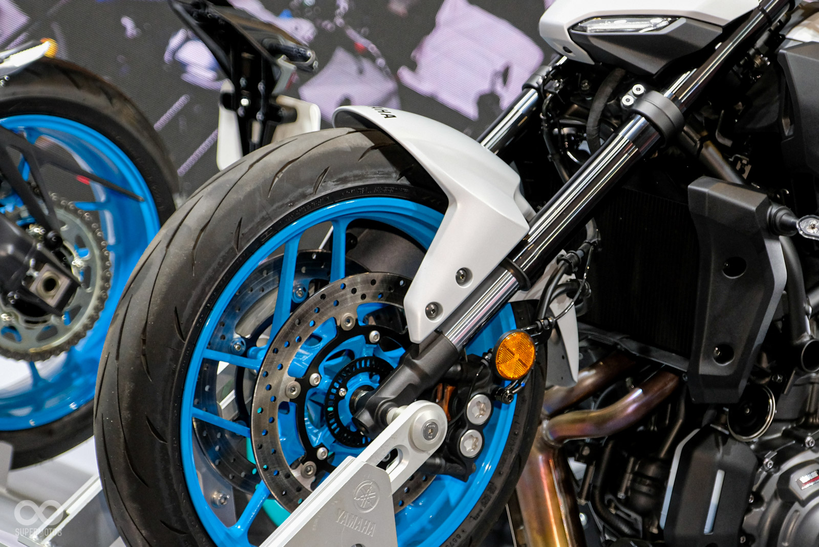 車架部分延續高張力鋼管結構,雖然重量與前代相同,但針對扭轉、縱向與橫向剛性進行優化調整,全面提升彎道操控與高速穩定性。懸吊系統則升級為全新41mm倒立式前叉與連桿式中置單槍後避震,經過精準調校後,無論是過彎支撐還是市區靈敏性都有顯著提升。制動系統同樣升級,前方採用雙298mm碟盤與輻射對向四活塞卡鉗配置,提供更強勁且穩定的煞車力道。MT-07座高為805mm,MT版整車重184公斤,Y-AMT版則為187公斤。