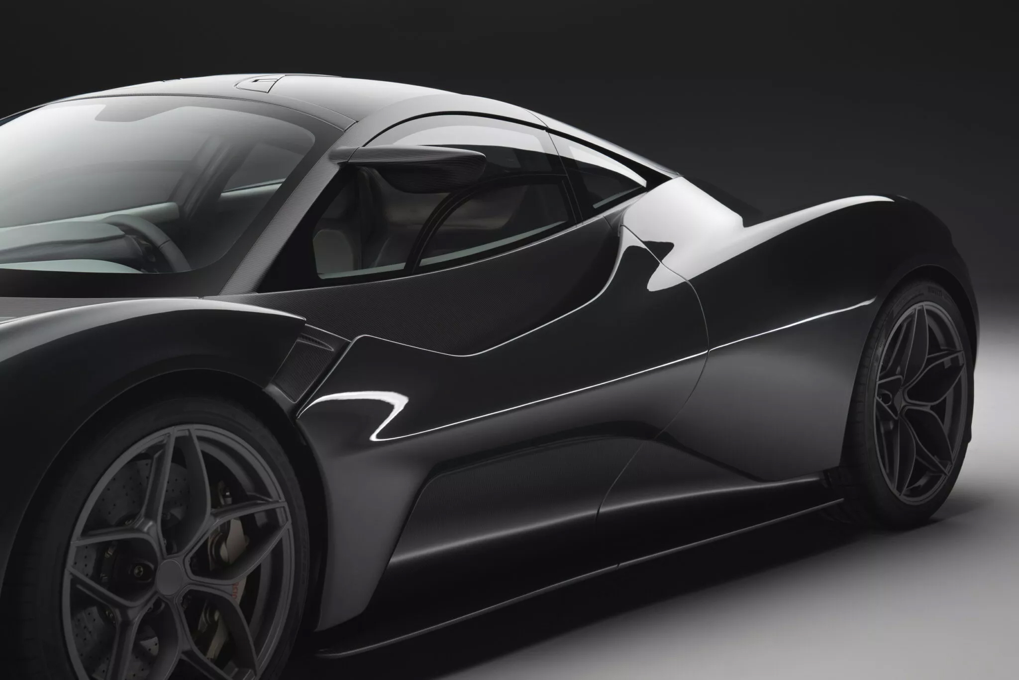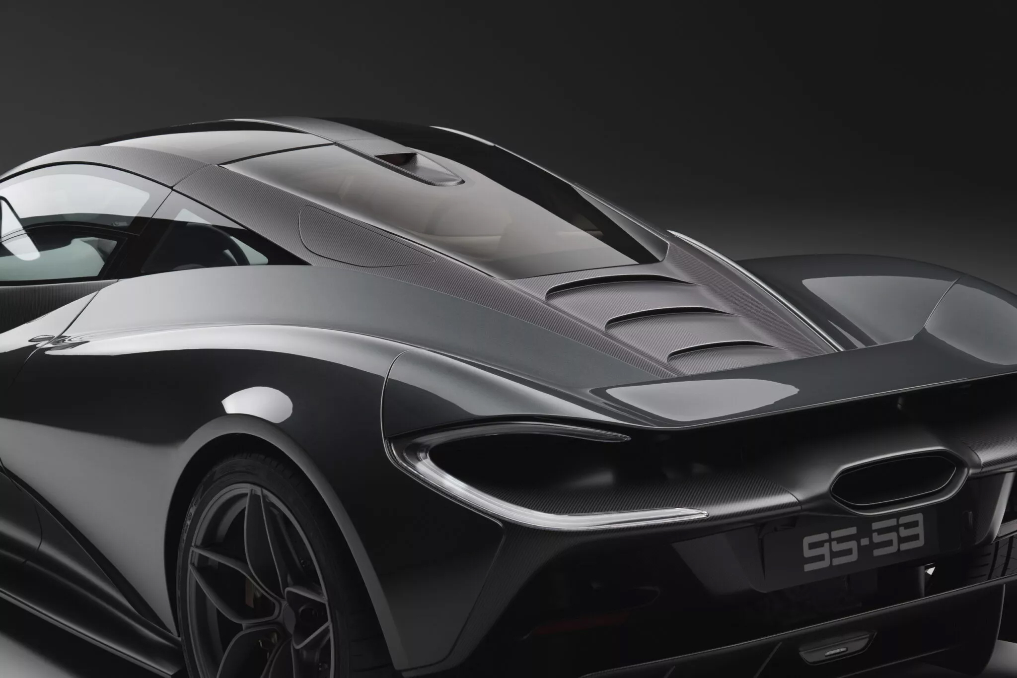 動力方面,95-59搭載McLaren 4.0升雙渦輪V8引擎,輸出超過850匹馬力與880牛頓米扭力,透過七速雙離合自排變速箱傳至後輪。沒有油電系統的包袱,意味著駕駛體驗更加純粹直接。車重僅約1,250公斤,若選配專屬的LM30輕量化套件,包含Inconel排氣、鈦合金部件與鍍金隔熱材料,更能進一步強化其性能與聲浪。