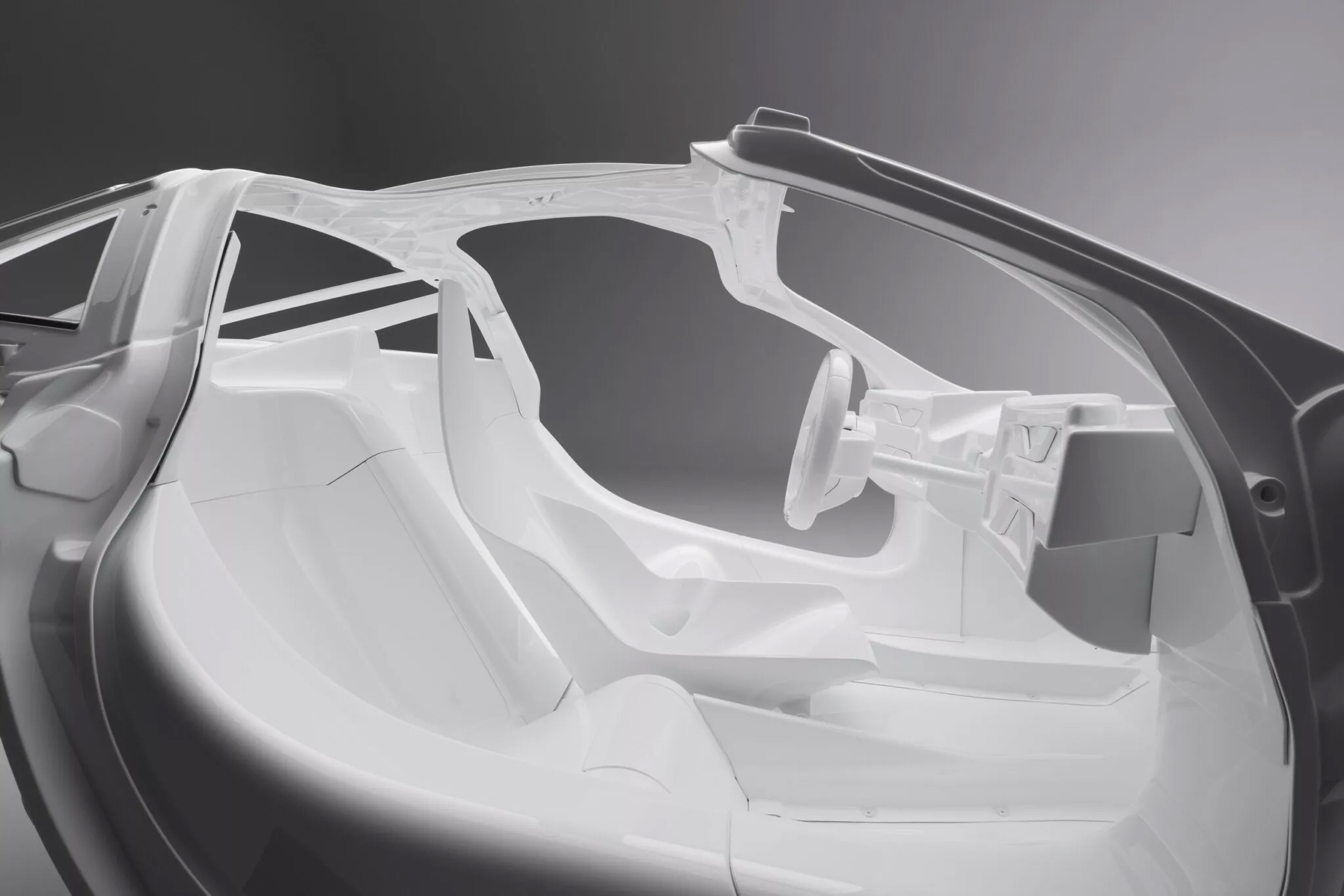 車艙設計同樣令人驚艷,飛翼式車門整合玻璃車頂,方便進出中央駕駛座;除了三座設定,前方行李空間也考量到實用層面,讓這不只是展示用的收藏品,更是可真正上路奔馳的超跑。