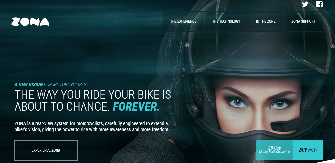 ZONA 後方攝影系統是由北英格蘭的一間新創公司JAM TECHNOLOGY 所製造生產。該廠宣稱此系統能即時將後方影像即時回傳,讓騎士更清楚後方盲點狀況,享受安全無虞的騎乘樂趣。