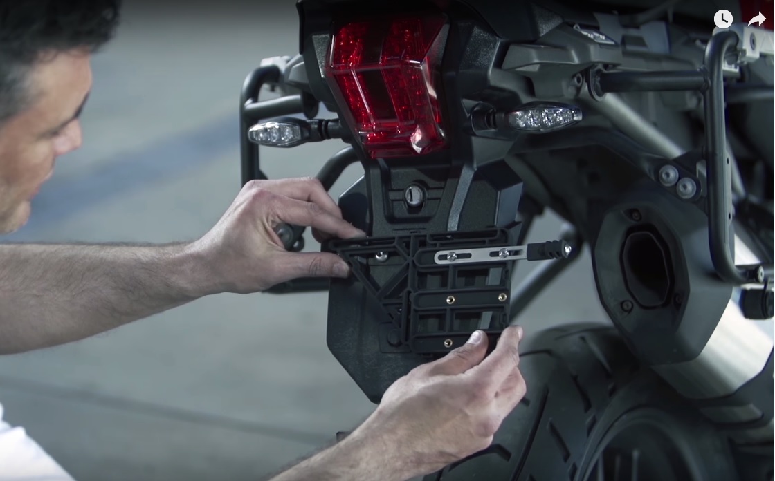 首先將後方車牌拆下,裝上攝影機架,可隨當地騎乘習慣安裝在左邊或右邊,攝影機架上後將攝影機調整至水平(上有燈號指示,水平時會亮綠燈,若非則亮紅燈),調整好後鎖緊。