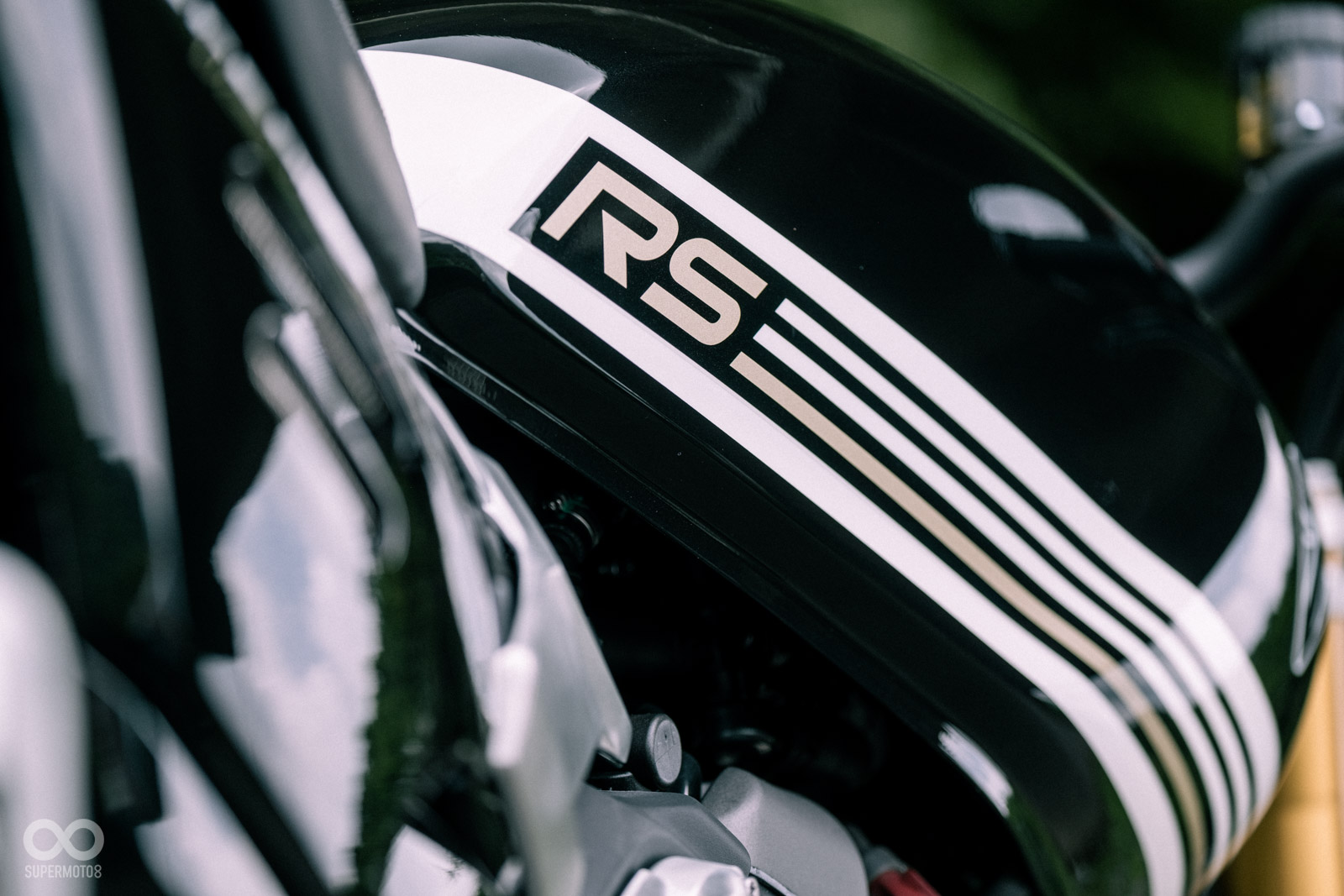 Speed Twin 1200 RS 延續 Bonneville 系列的招牌元素,圓燈、經典油箱造型以及緊緻的車尾線條,仍然保有濃厚的英倫味。但仔細觀察,RS 版本在細節處更見精緻,像是專屬的 RS 彩繪、點綴部分霧面金屬質感的側蓋徽飾,還有專屬的黑色引擎外蓋,低調中透出濃烈的性能感。