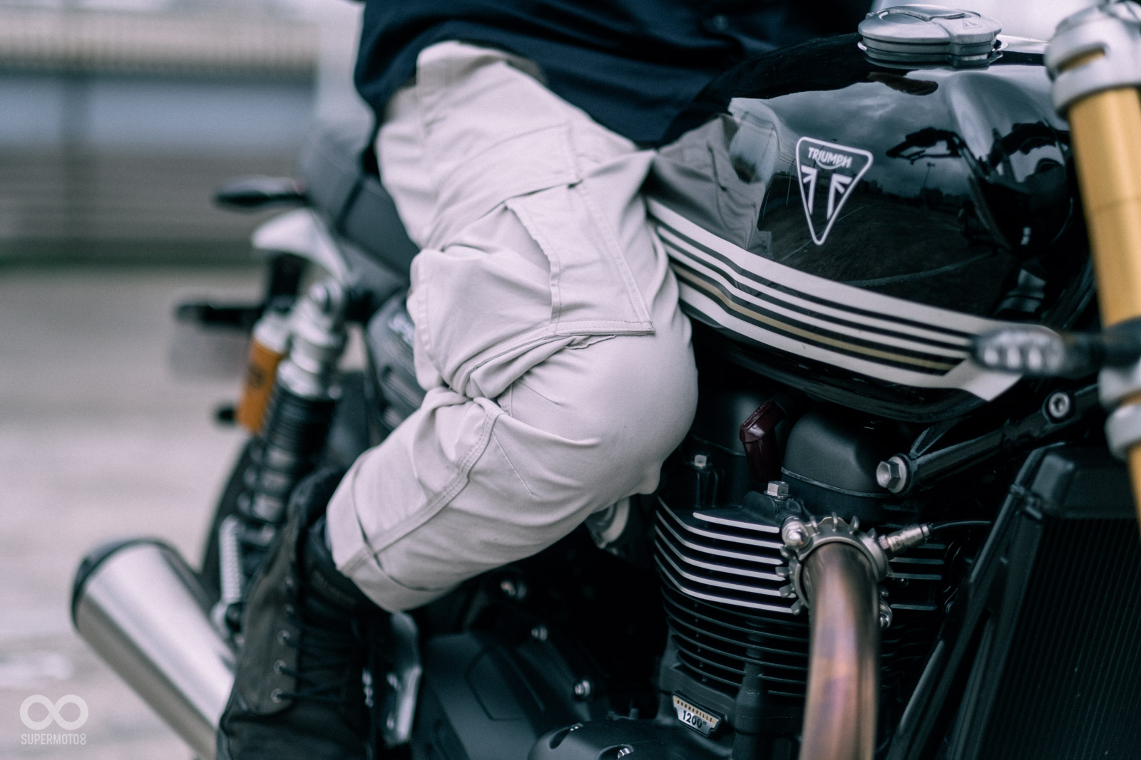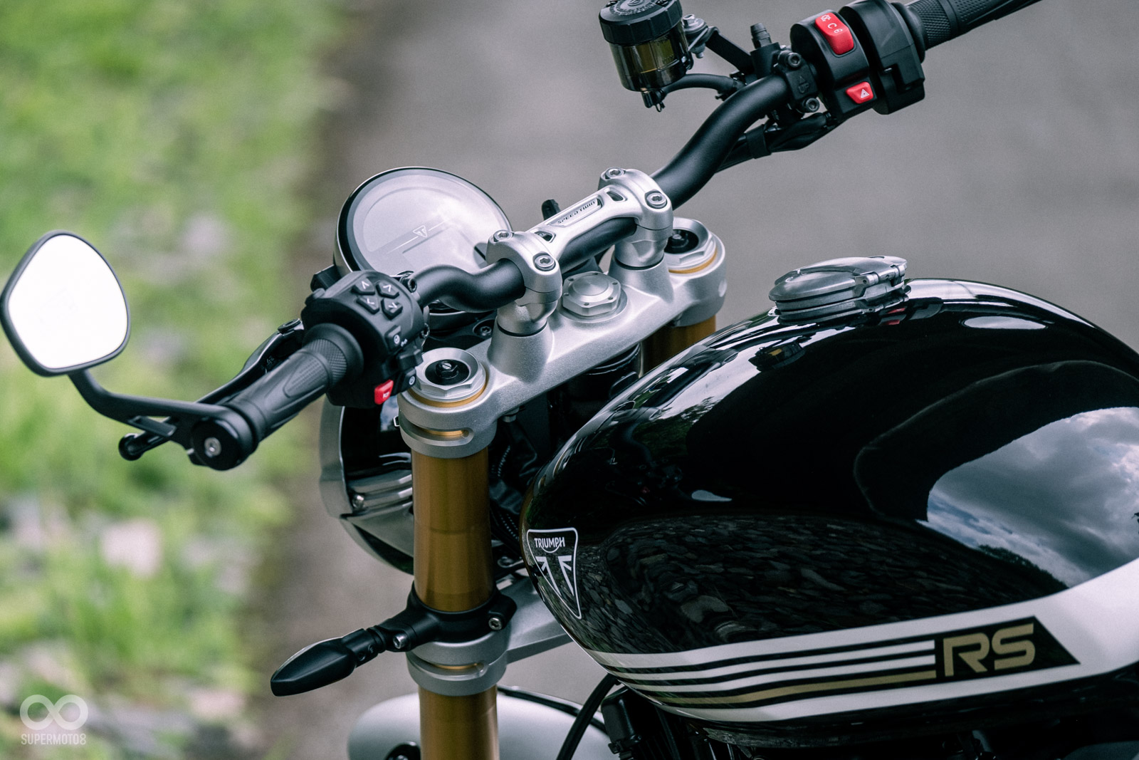 Speed Twin 1200 RS 的車把相較標準版向前、向下移動,配上更後移、微微升高的腳踏設定,搭配稍微抬高的車尾,讓整台車的重心更加集中,視覺與動態都更向前傾。