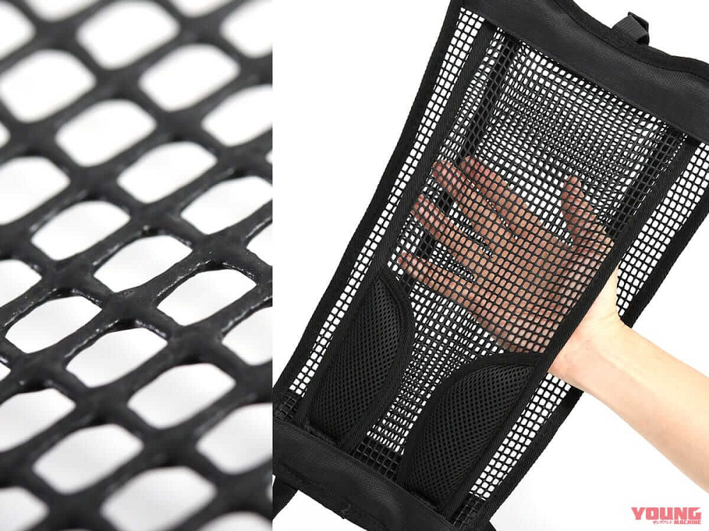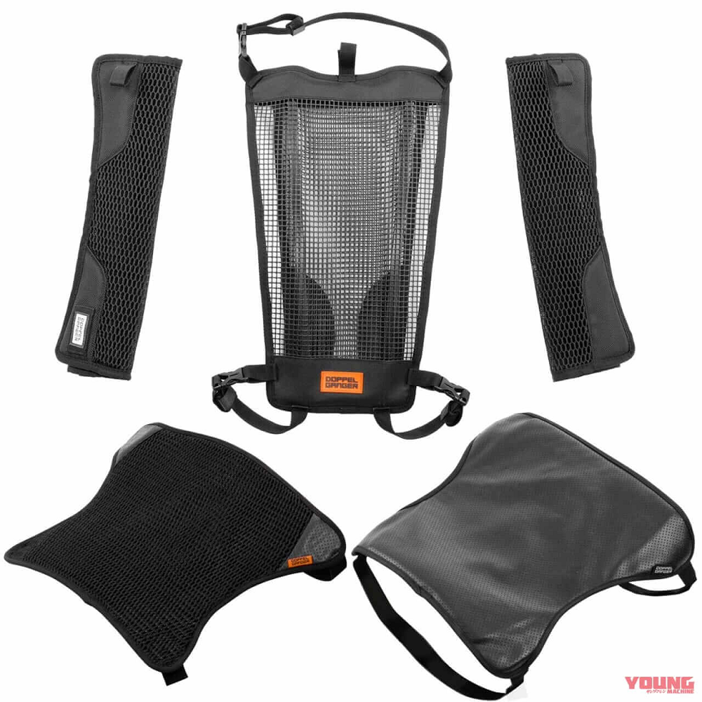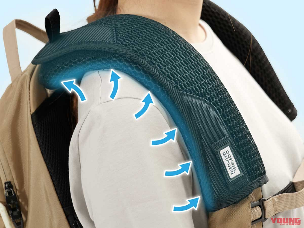 炎熱天氣下的機車座墊相信大家都知道有多熱,Doppelganger的降熱座墊簡單在座墊和騎士臀部中間裝上了一個空氣流通網布,騎車過程時可以讓空氣更快速流過,讓臀部可以快速散熱。這組後背包背帶也是一樣的道理,不過是將降溫墊改到背部讓你在夏天騎車也能夠更快降溫,但他們加了5mm的孔洞來避免包包背帶在你騎車時滑落。