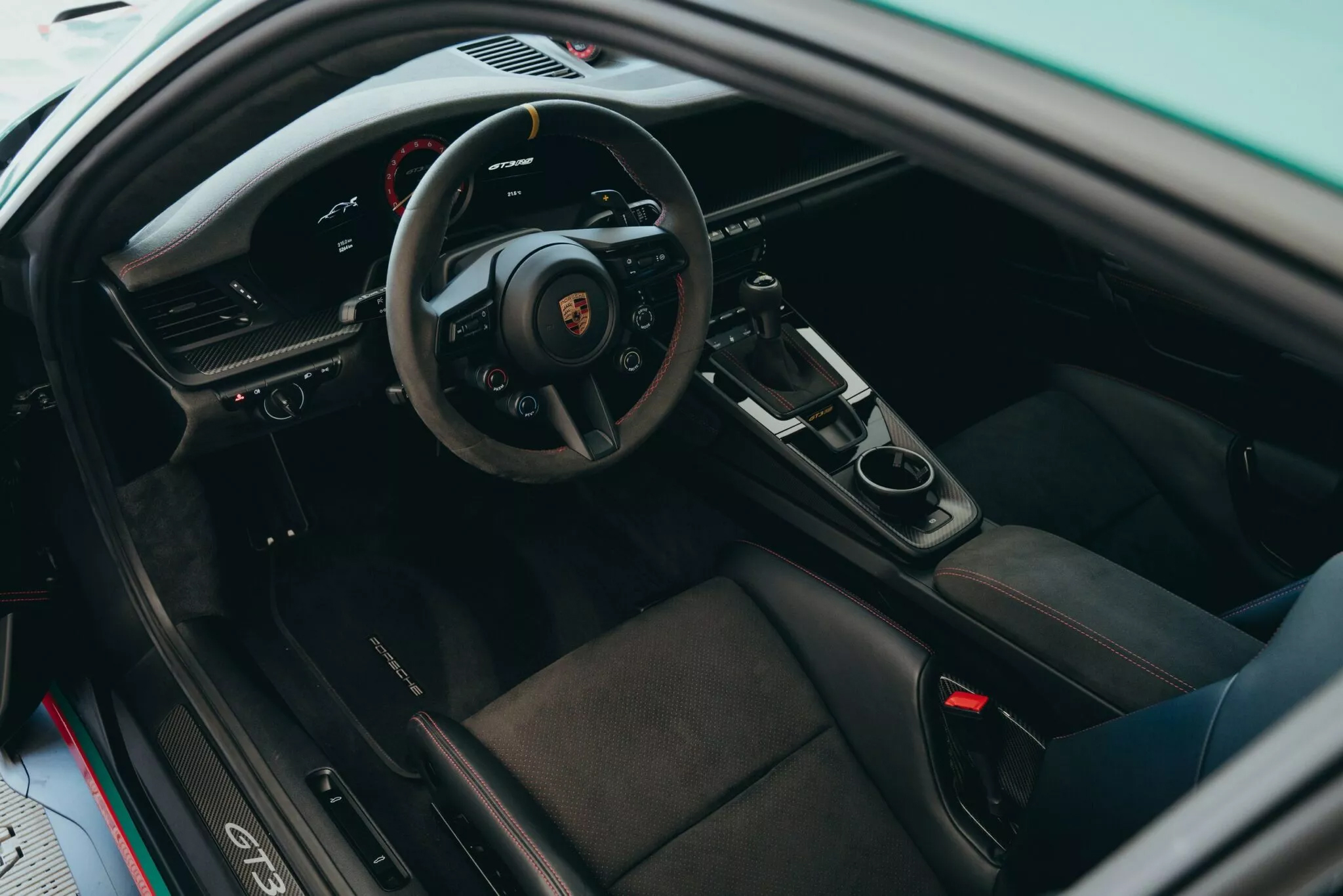 此外,車輛搭載 Weissach 套件、Clubsport 套件、Porsche 陶瓷複合煞車(PCCB)、以及前軸抬升系統,維持 GT3 RS 應有的高性能硬體規格。可見此車雖屬聯名特仕,仍忠於 Porsche GT 部門的性能哲學。