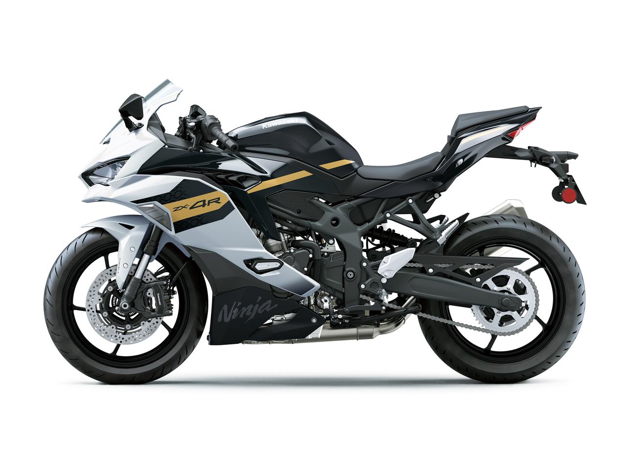 Ninja ZX-4R SE 持續搭載 399c.c. 水冷並列四缸引擎,最大馬力可達 77 PS,並具備快排系統、TFT 全彩儀表、動力模式、循跡控制與整合式騎乘模式等完整電控系統。懸吊採用 Showa SFF-BP 前叉搭配預載可調的中置後避震,雙碟盤搭配輻射卡鉗,讓這台四缸小鋼炮有著不輸中排量仿賽的彎道實力。