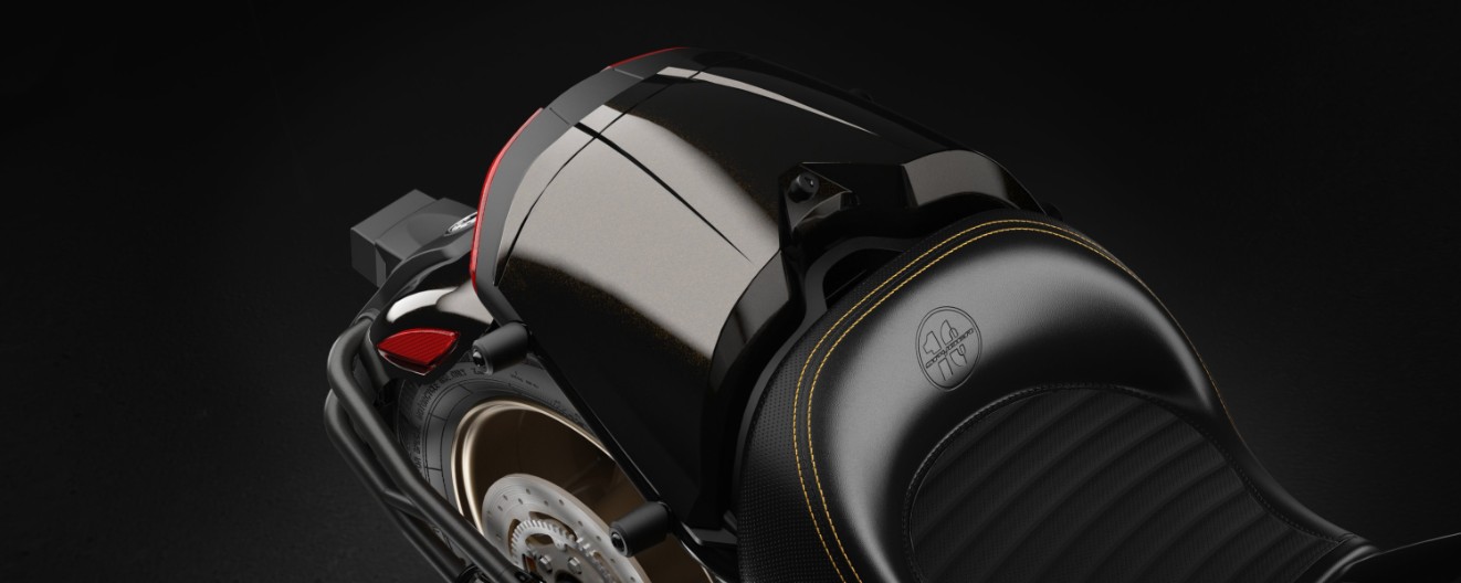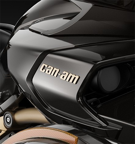若是在走近一點觀察,輪圈採用了Y型的設計,更加符合時下的設計趨勢,而在一旁的Cam-Am廠徽也以金色打造,椅面上也繡上了10周年的紀念Logo,而在油箱上更有立體浮雕設計的10周年廠徽,在每個細節都精雕細琢,讓這輛10周年限量紀念版更顯其珍貴之處。