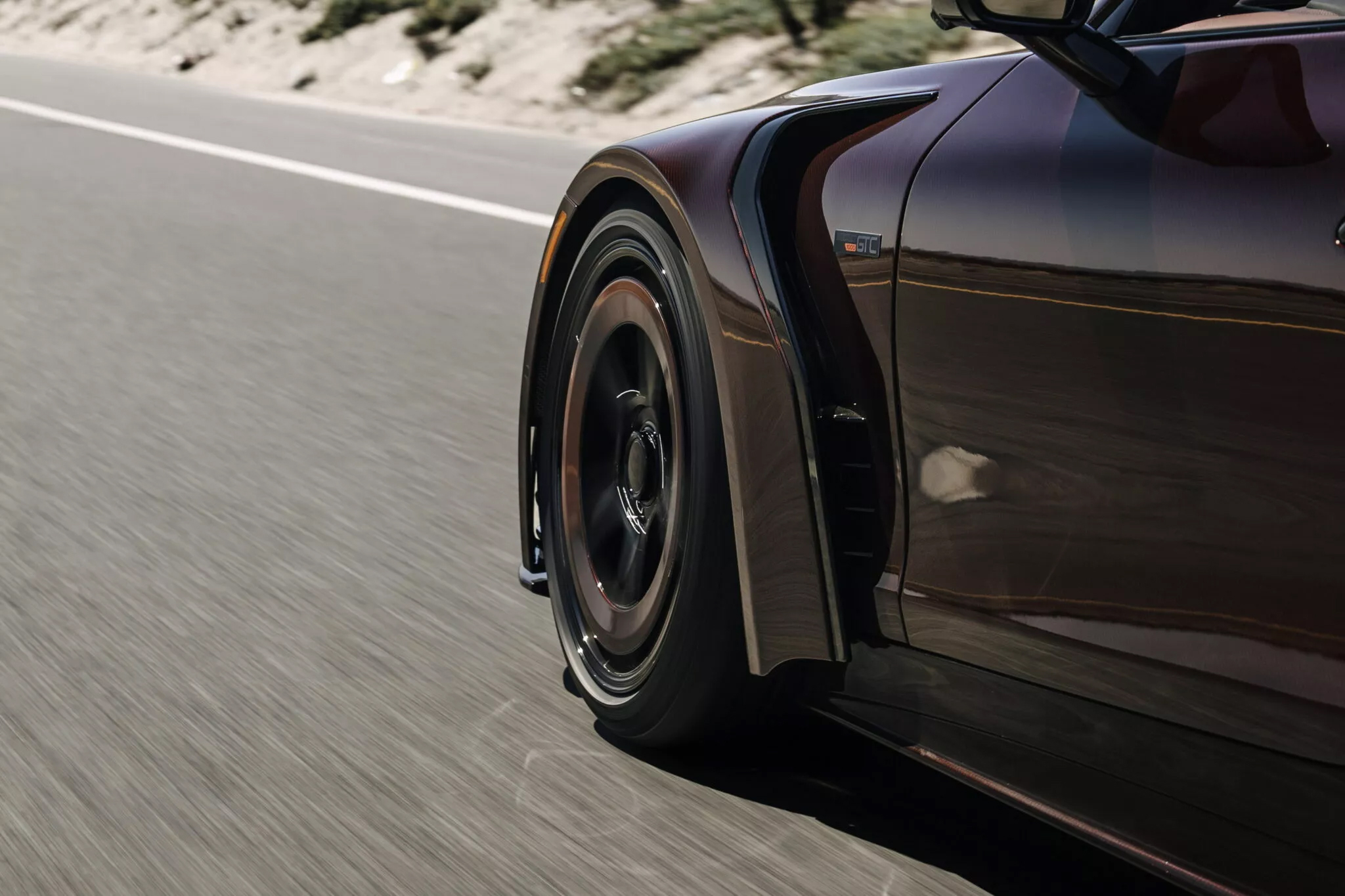 Rocket GTC DEEP RED 外觀每一片鈑件皆為專屬開發,包含導流效果更強烈的前葉子板,以及線條重新雕塑的後葉子板,並搭配一體化尾翼設計。車身命名靈感來自於 紅色碳纖維材質,此元素廣泛應用於外觀與 Brabus 專屬鍛造輪圈,形成強烈的辨識度。