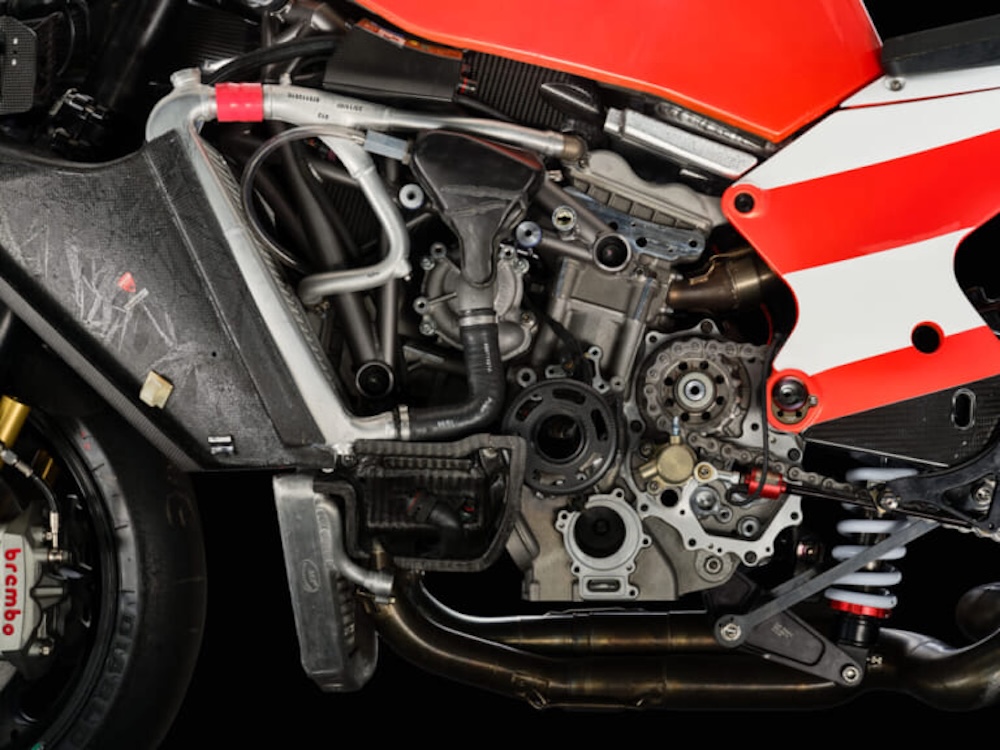 這次要拍賣的 GP8,雖然不是當年 Hayden 測試的那台「本尊」,但來頭也不小。據說 2010 年有收藏家直接從 Ducati Corse 官方手上拿到 GP7、GP8 的零件,才組成這台機器。