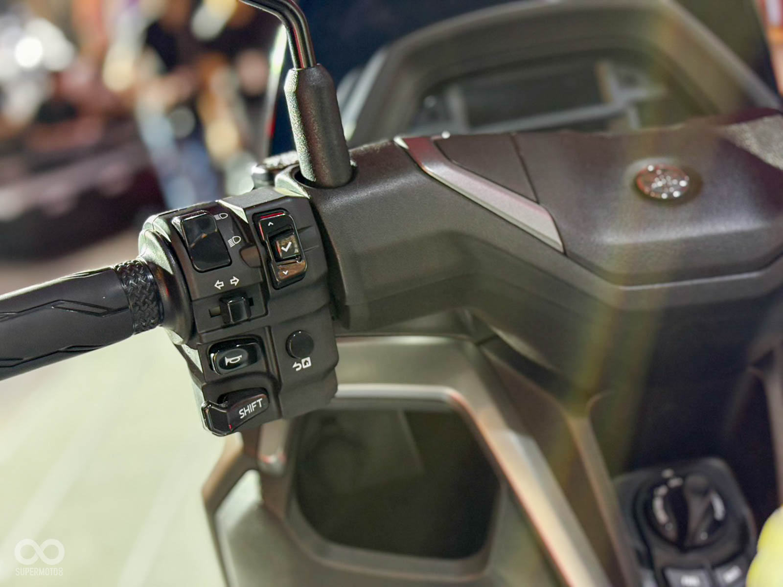 最大亮點是全新導入的 YECVT(Yamaha Electronically Controlled CVT)電子控制無段變速系統。騎士可以透過手把左側的 Shift 控制鍵切換三段模擬檔位(Shift Down 1st–3rd),並依照需求選擇 T-Mode 與 S-Mode,兼顧日常代步與激情騎乘。
