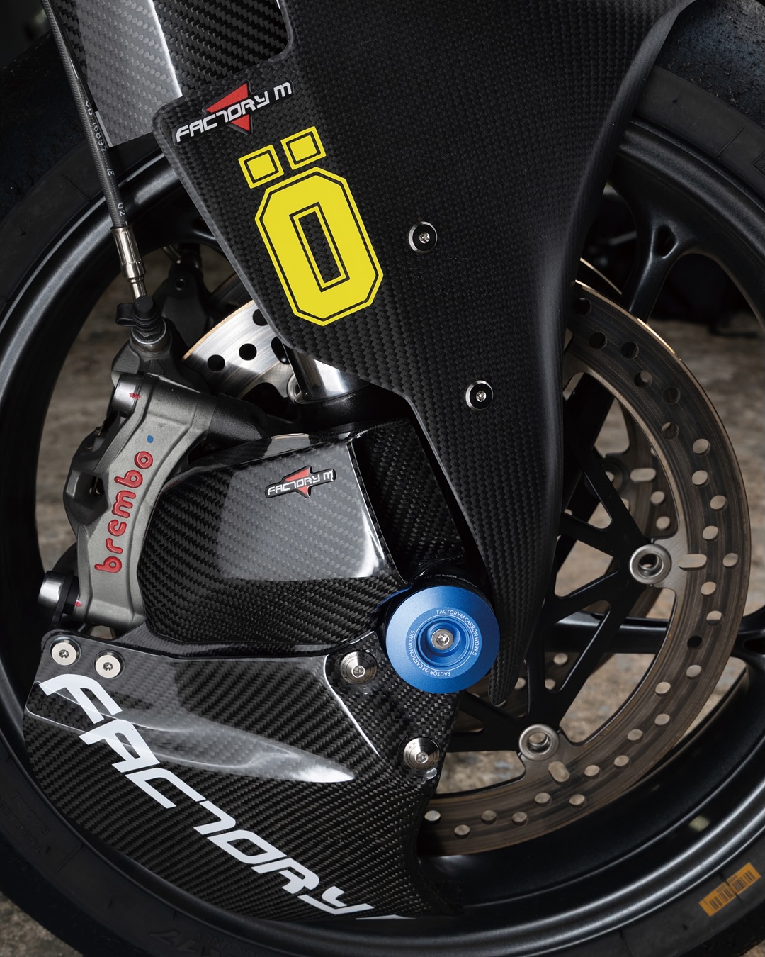 細節更是滿滿賽道思維:卡鉗與碟盤導風口,不僅能降低溫度,還能在彎中提供更多下壓力,讓騎士更有信心。特製前土除與完整空力套件,則進一步替這台三缸猛獸披上戰鬥武裝。