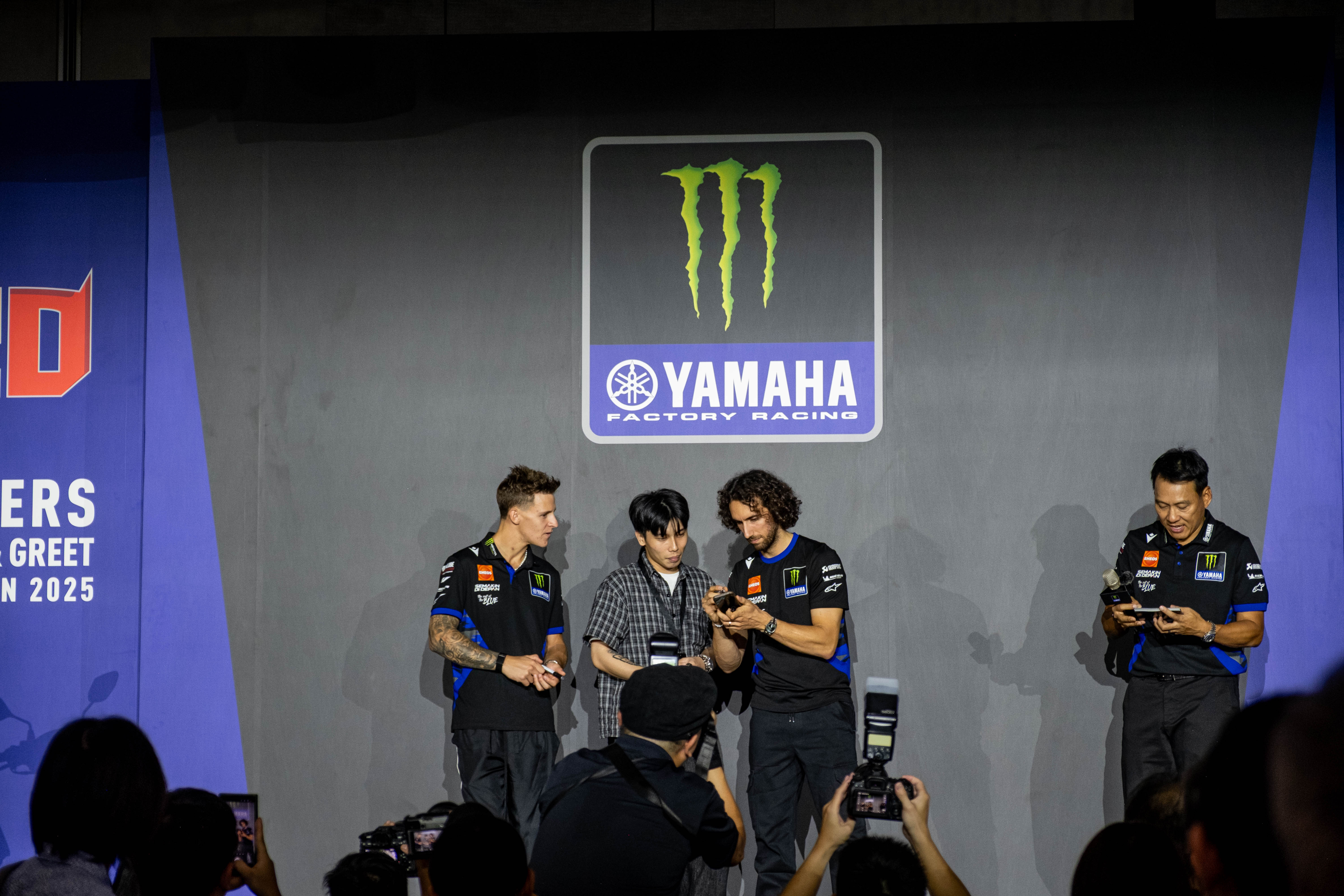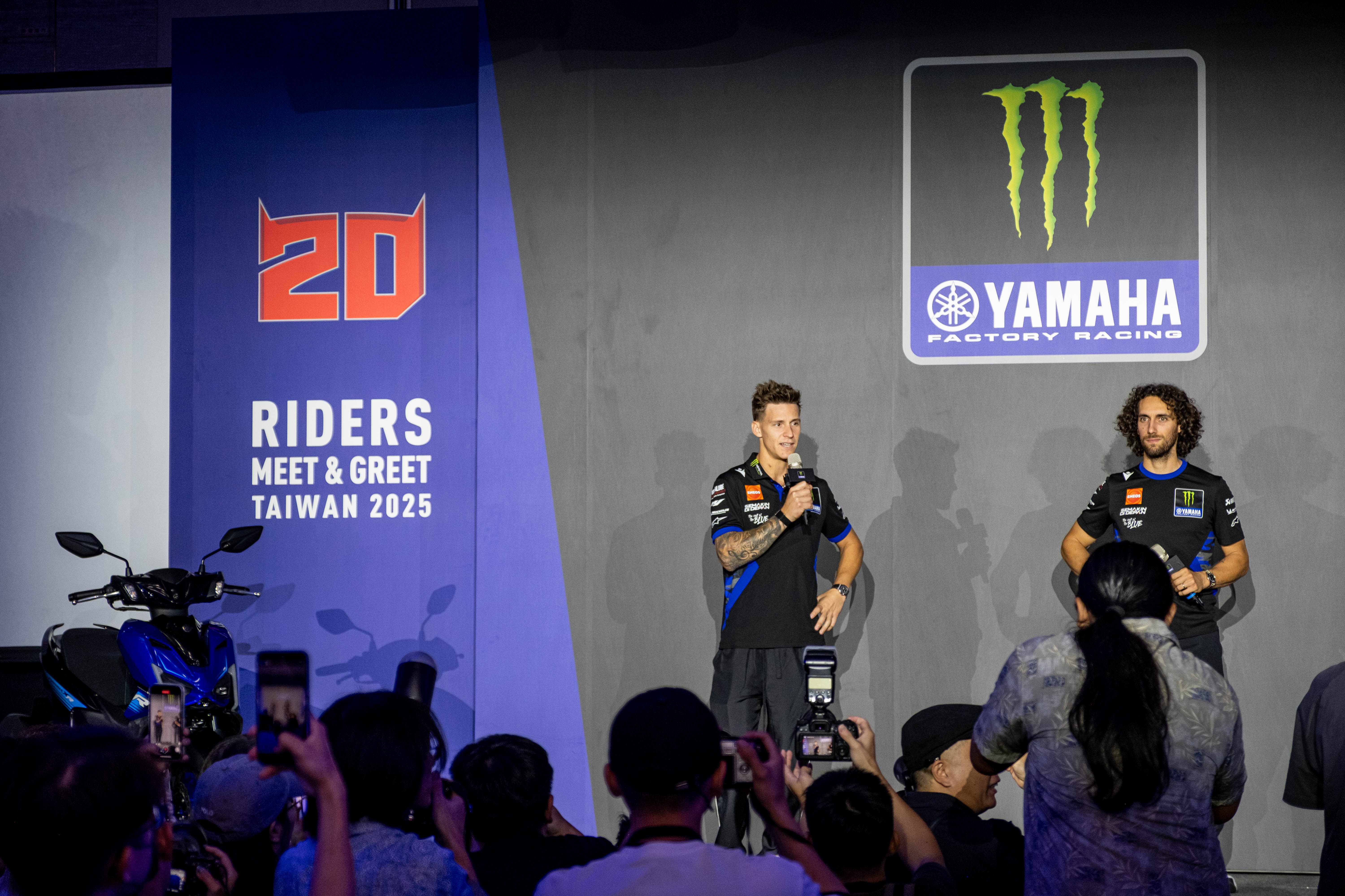 2025年9月29日,台灣山葉機車為台灣車迷帶來了一場史無前例的驚喜!Monster Energy Yamaha MotoGP的兩位頂尖戰將Fabio Quartararo與Álex Rins,在日本站後、印尼站前夕,特別撥冗快閃台灣,舉辦了一場「Monster Energy Yamaha MotoGP選手台灣快閃粉絲見面會」。現場不僅星光熠熠,更充滿了各種意想不到的爆笑互動,讓所有到場的車迷都直呼值回票價!