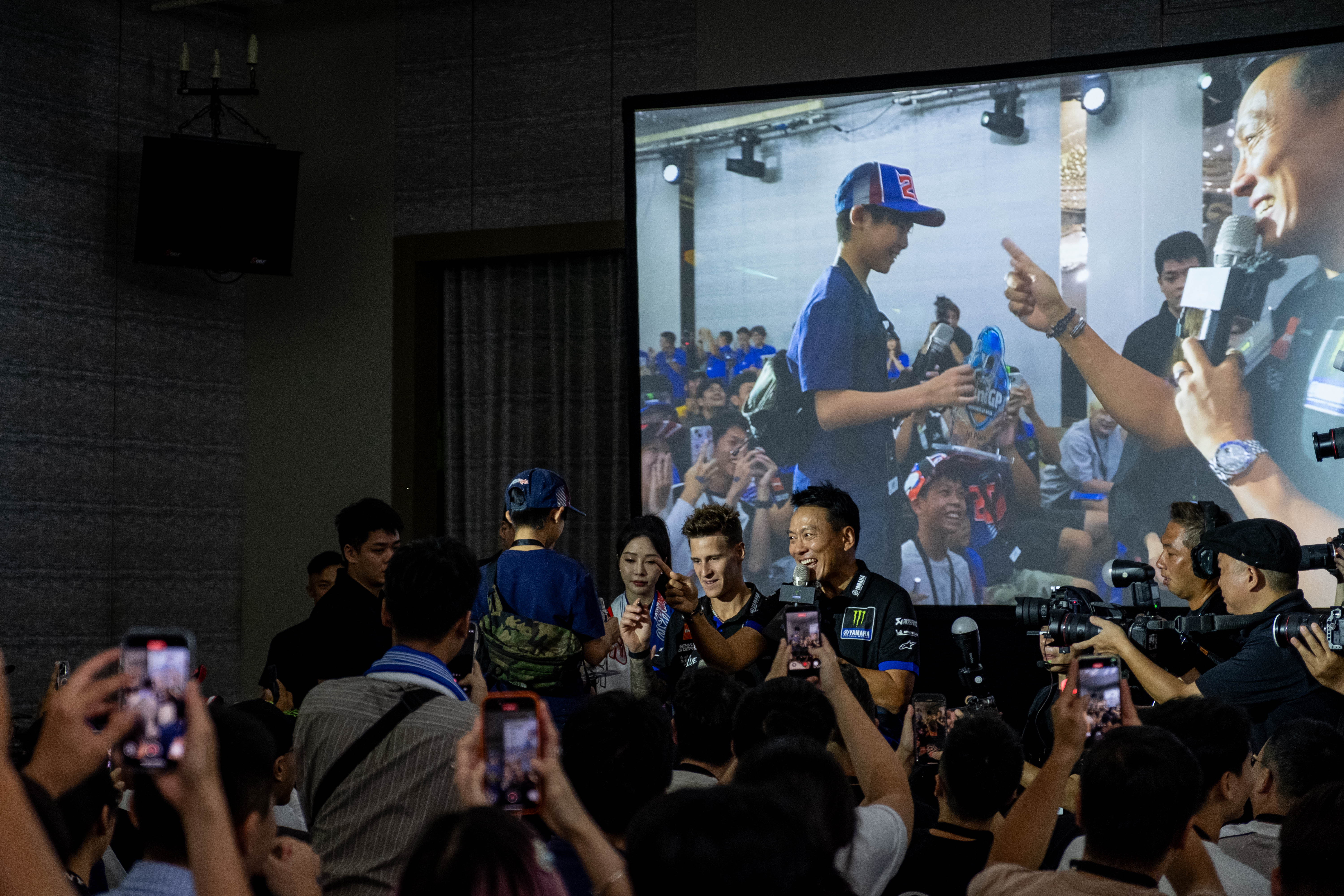 Quartararo當場展現他幽默的一面,不僅逗趣地「抓包」這位車友,還主動抓著車友自拍合影,並「勒令」他當場換掉手機桌布,讓現場笑聲不斷,也展現了Quartararo親民又可愛的一面。