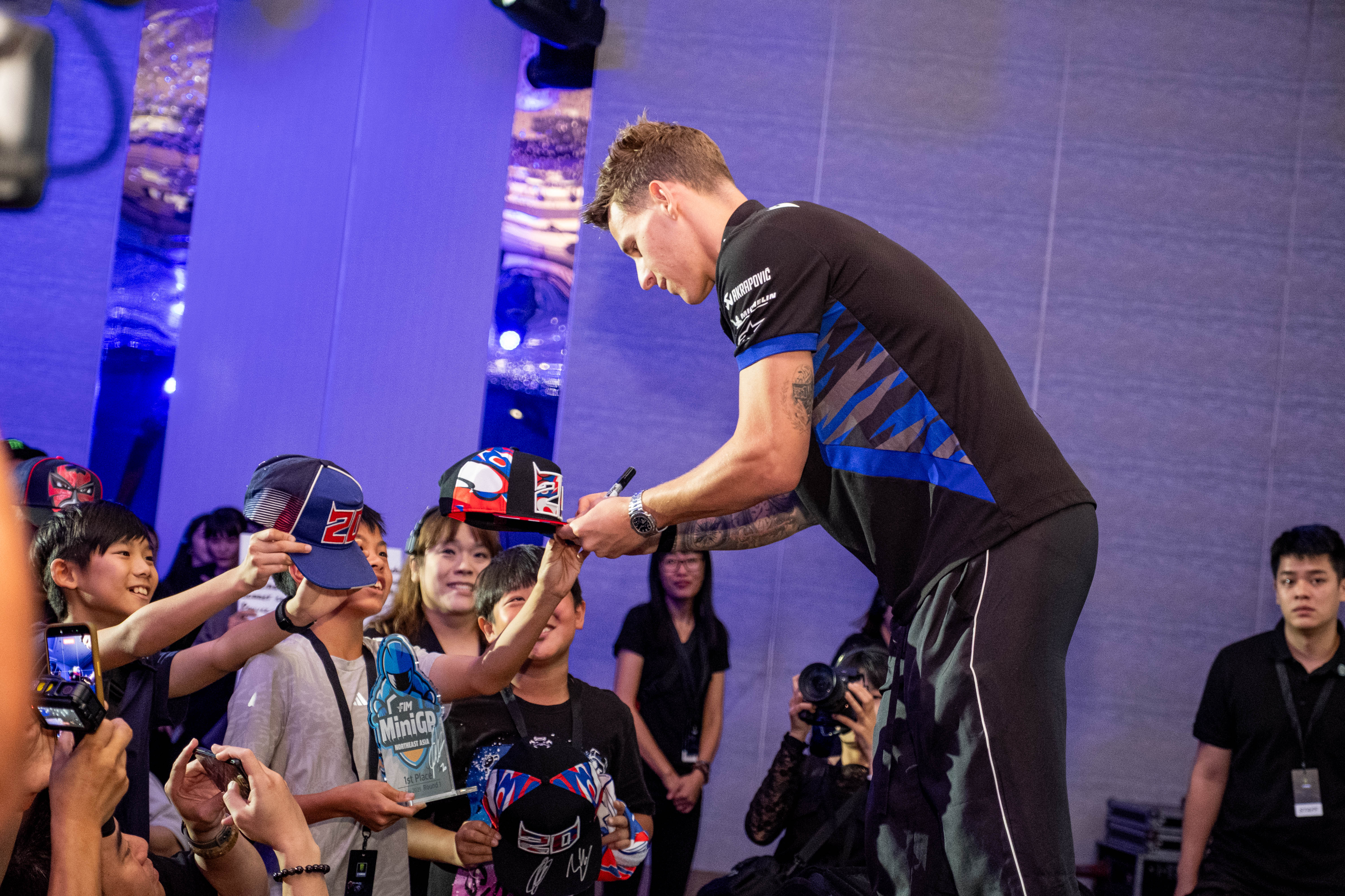 而當活動即將進入尾聲時,兩位車手更是帶來了最大的驚喜!他們直接返回舞台,表示願意為在場所有的車友進行簽名留念!這一舉動瞬間將現場氣氛推向最高點,也讓所有車迷都感受到兩位MotoGP巨星對台灣粉絲的真摯情誼。這場充滿歡笑、驚喜與感動的粉絲見面會,無疑在台灣的MotoGP歷史上寫下了濃墨重彩的一頁!