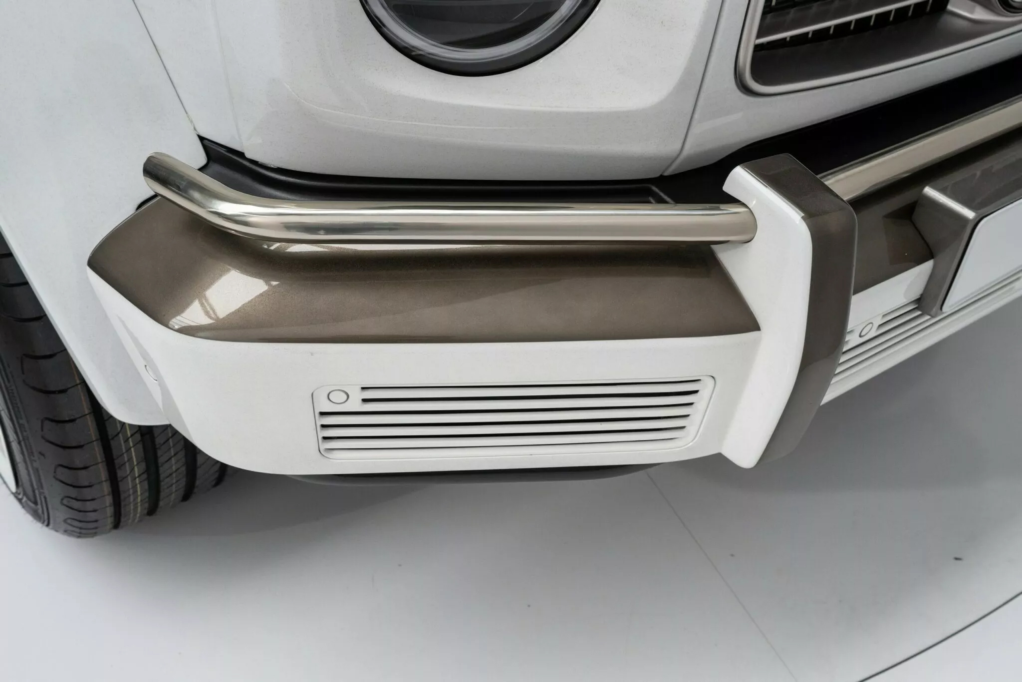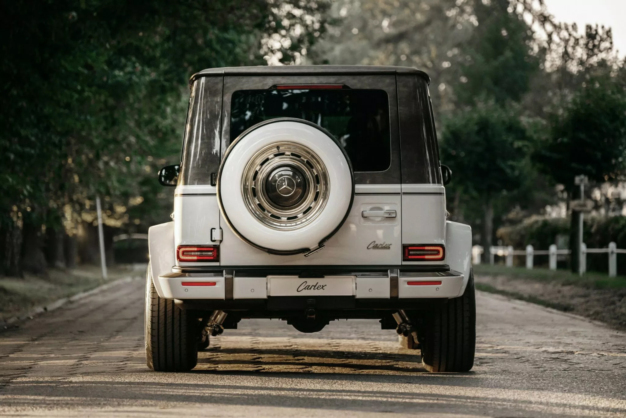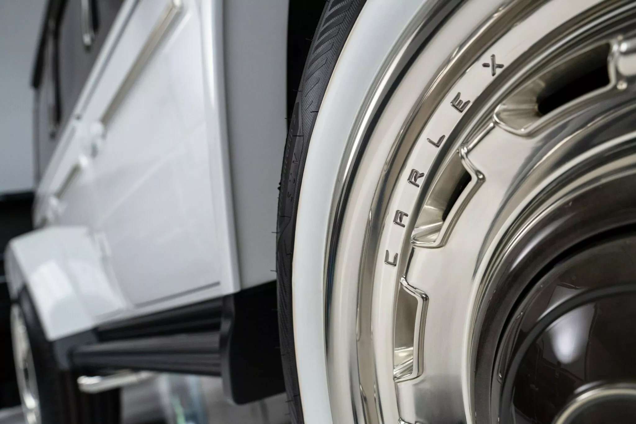 外觀上採用 專屬寬體套件,包含張力十足的輪拱、復古風格鋁圈、白邊輪胎、鍍鉻保桿飾條與經典徽飾,整體造型像是讓現代G-Class回到了七○年代的硬派年代。