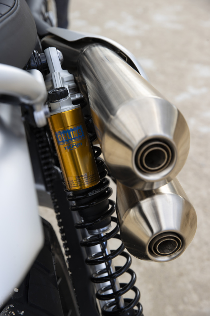 車身細節全面升級,包括 拉絲鋁製 Monza 油箱蓋、陽極搖臂、鋁合金側號碼板與護底板、拉絲徽飾等,每一個部位都展現英式工藝。