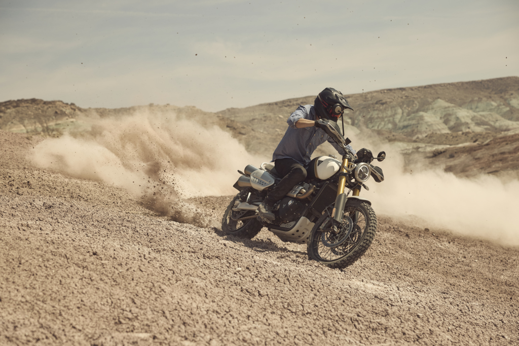 全新 Scrambler 1200 XE 延續專屬 Scrambler 鋁合金車架與長行程懸吊設定,行程達 250mm,無論泥地、礫石、山路皆能游刃有餘。