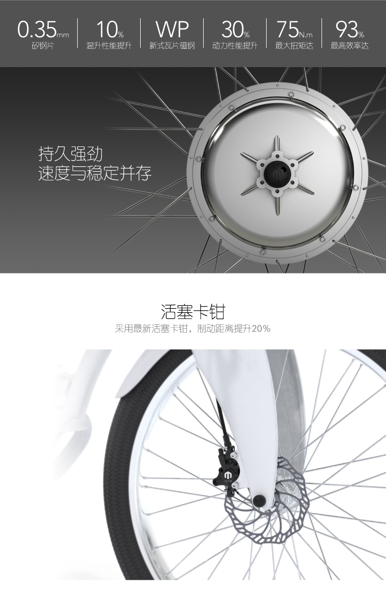 電池採可交換的設計,每組電池重2.8kg,有2600mAh、2900mAh兩種規格,可支援600次循環充電且宣稱有5年的電池壽命,完全充滿電需要5個小時的時間,標準配備每車2顆電池,也可以經由擴充裝下4顆電池,有效續航里程可達200km之多,圓潤的電池外型不僅可愛,上頭還有電量顯示以及USB插頭,能夠在緊急的時候為手機充電,搭載上Bosch的電動馬達最高時速僅僅只有48km/h而已,如果以腳踏車來說已經是個很快的速度,但以機車來講還是太慢了。