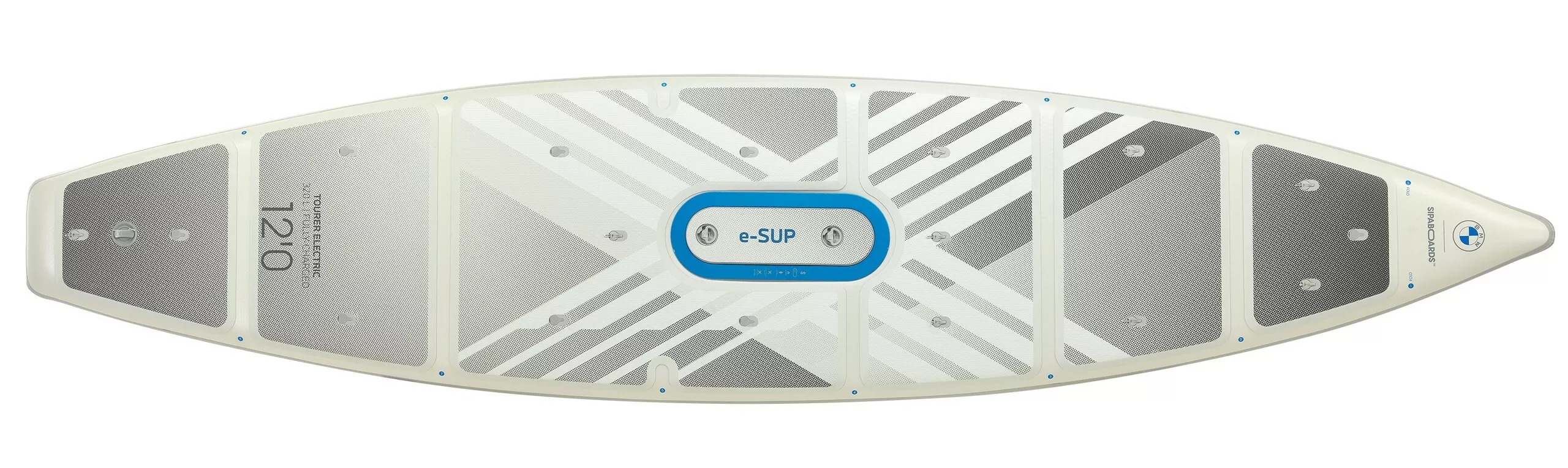 BMW x Sipaboards採用輕量級充氣式結構,全長3.65米、寬0.82米,總重僅14.9公斤(含馬達),但卻能夠承載兩位成人。板體內建的300W馬達具備自動充氣功能,大幅減少使用前的準備時間。此外,其最高航速可達4節(約7.5公里/小時),即使逆風或水流不利,也能協助使用者穩定推進。