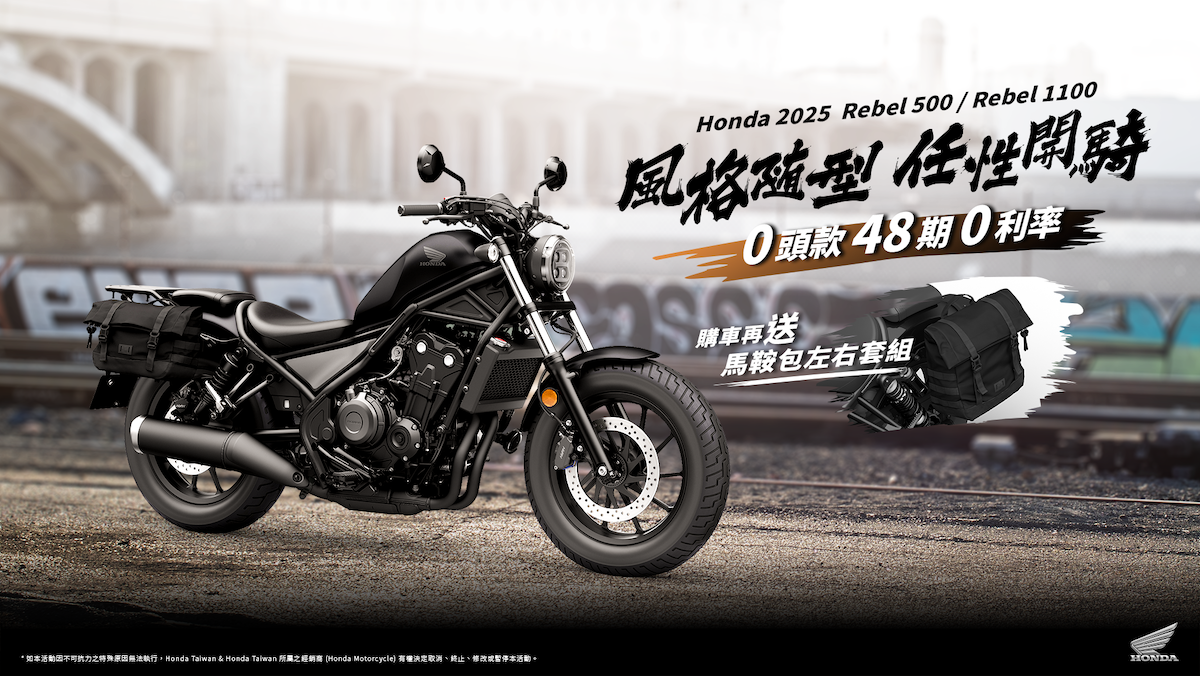 Honda Motorcycle 風格隨行 任性開騎 全車系指定車款最高享48期、0頭款、0利率 Rebel500、Rebel1100購車再送馬鞍包左右套組