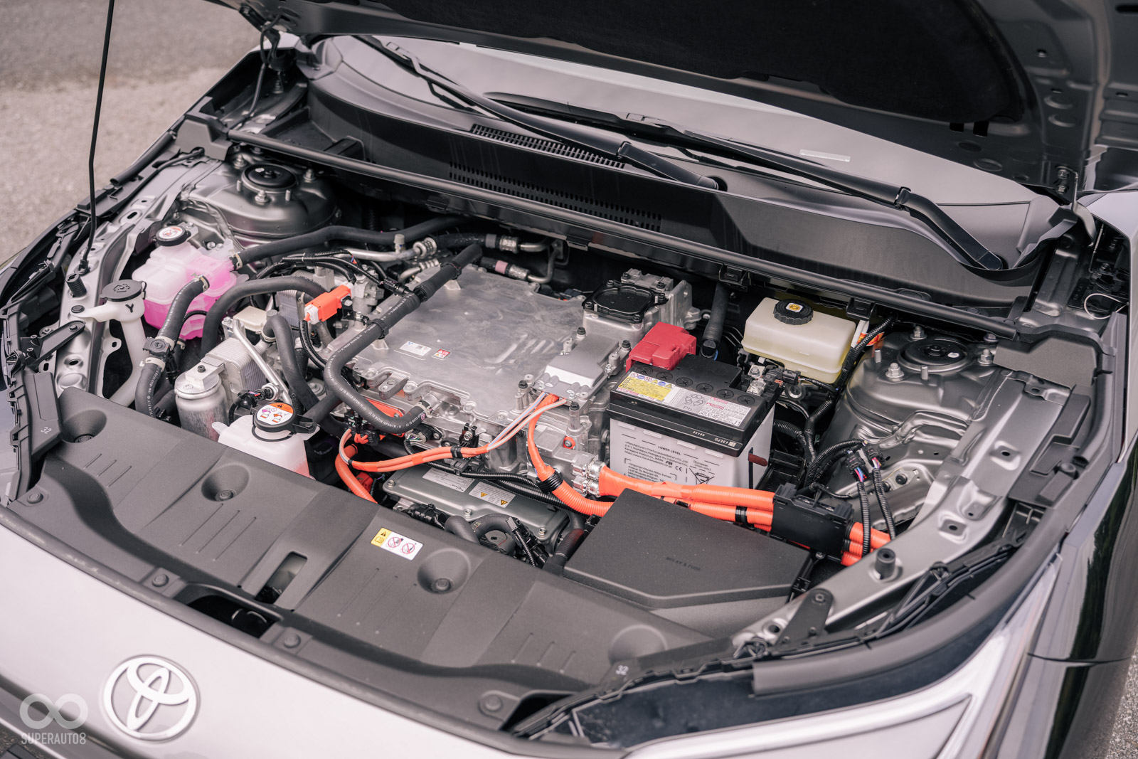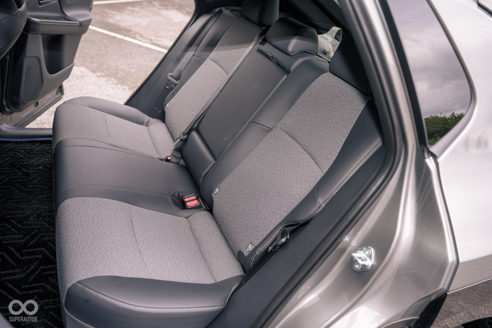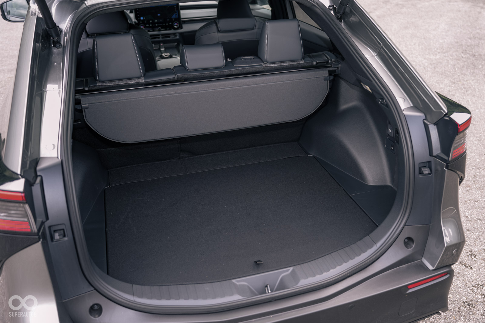bZ4X 的座艙採「駕駛導向」設計邏輯,以簡約的薄型儀表台與獨立中控模組「Digital Island」營造寬敞感與科技氛圍。全車內裝全面進化,配備 Toyota 家族最新的 14 吋影音主機(同 NX、RX、Alphard 規格)、雙無線充電板、64 色氣氛燈與 PM2.5 濾網+nanoeX 負離子空調系統。後廂新增 110V 外部供電功能(V2L),後座 USB Type-C 充電輸出提升至 60W,實用性明顯提升。
