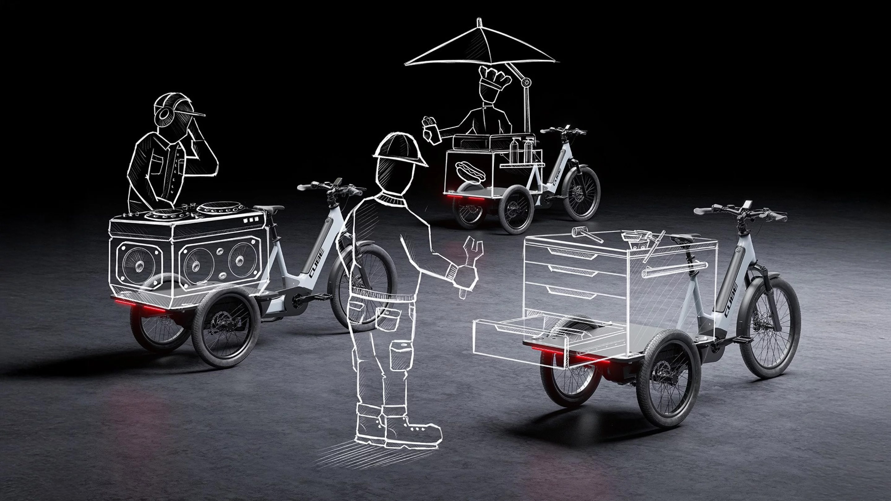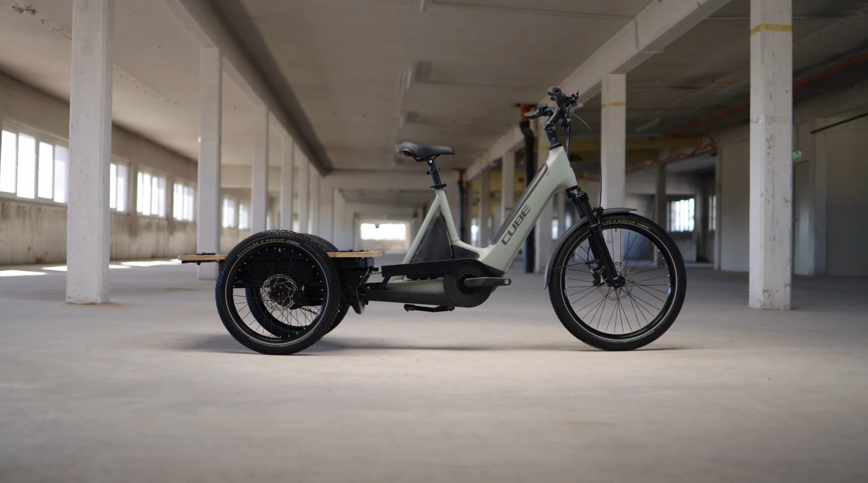 Cube 與 BMW 合作開發的 Trike Flatbed Hybrid 750 已正式量產上市,這是一款結合傾斜機構與平板載貨平台的電動三輪車,專為城市運輸設計。它延續了 Cube Trike Hybrid 家族的特色,前輪可隨騎士傾斜過彎,而後方雙輪則透過樞軸機構保持水平,確保貨物在轉彎時依然穩定。