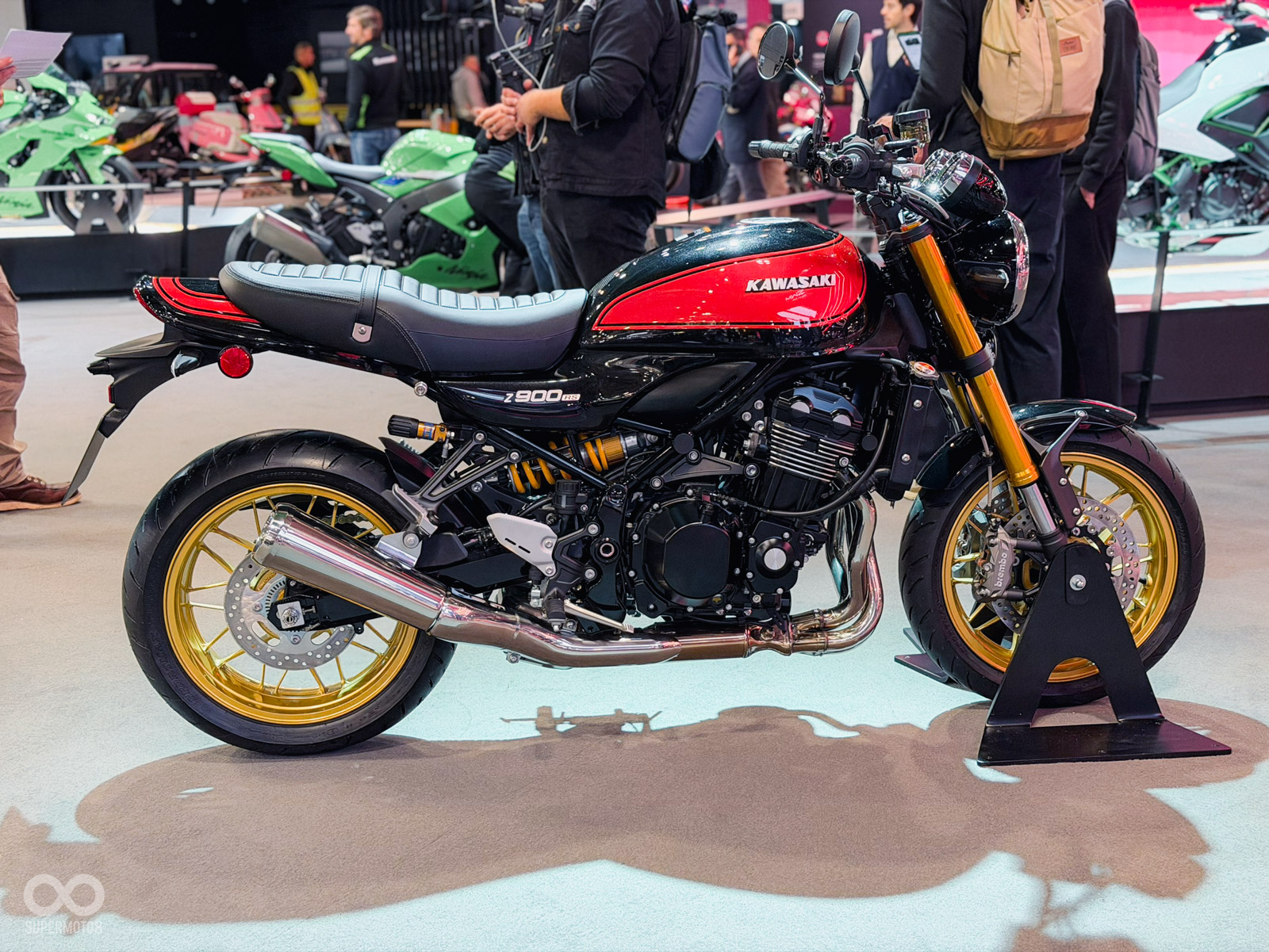 這次聯名款最大的亮點,毫無疑問就是那個經典的「火之玉」塗裝。這可不是隨便拿個色卡比對噴一噴而已,根據官方消息,這個配色是完全基於在 2025 日本移動展(Japan Mobility Show 2025)上發表的 2026 年式 Z900RS SE 實車顏色進行調校的。
