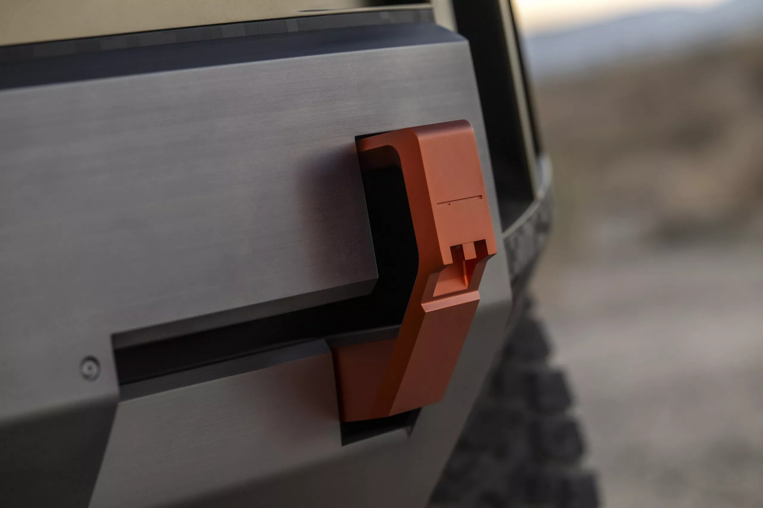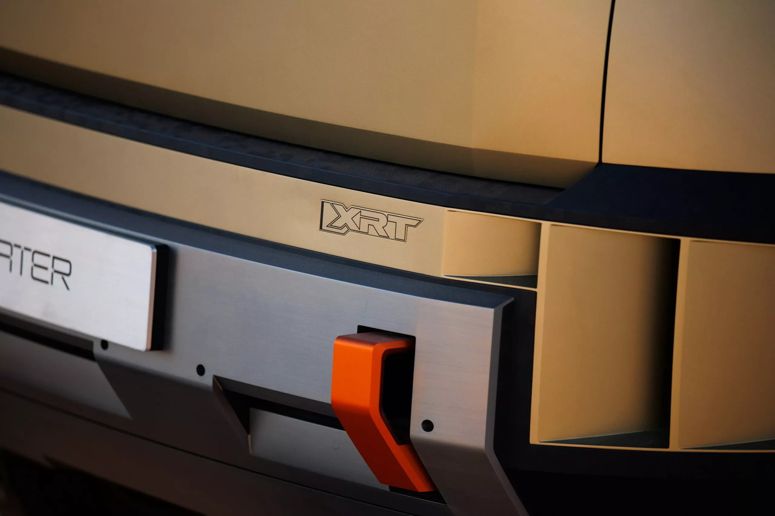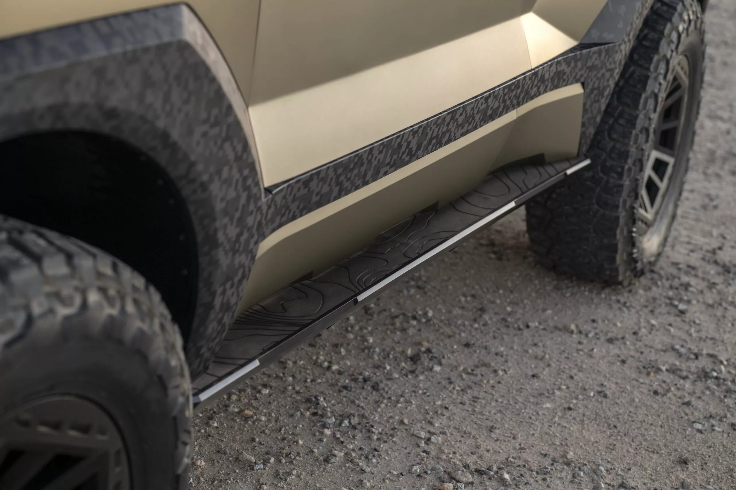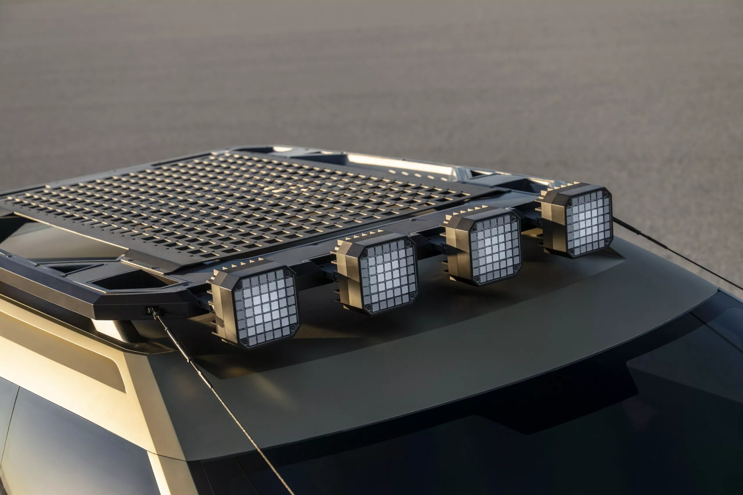 Crater Concept的設計語彙大膽前衛,整體車身比例高聳而短捷,短前後懸與肌肉感十足的輪拱暗示強烈的越野潛力。車頭採封閉式格柵搭配「Pixel Light」像素化頭燈,展現出未來科技感,同時兼具功能性與視覺力量。從細節來看,Crater的線條更貼近工具化SUV的精神,既有粗獷的金屬感,也保留電動車應有的簡潔輪廓。