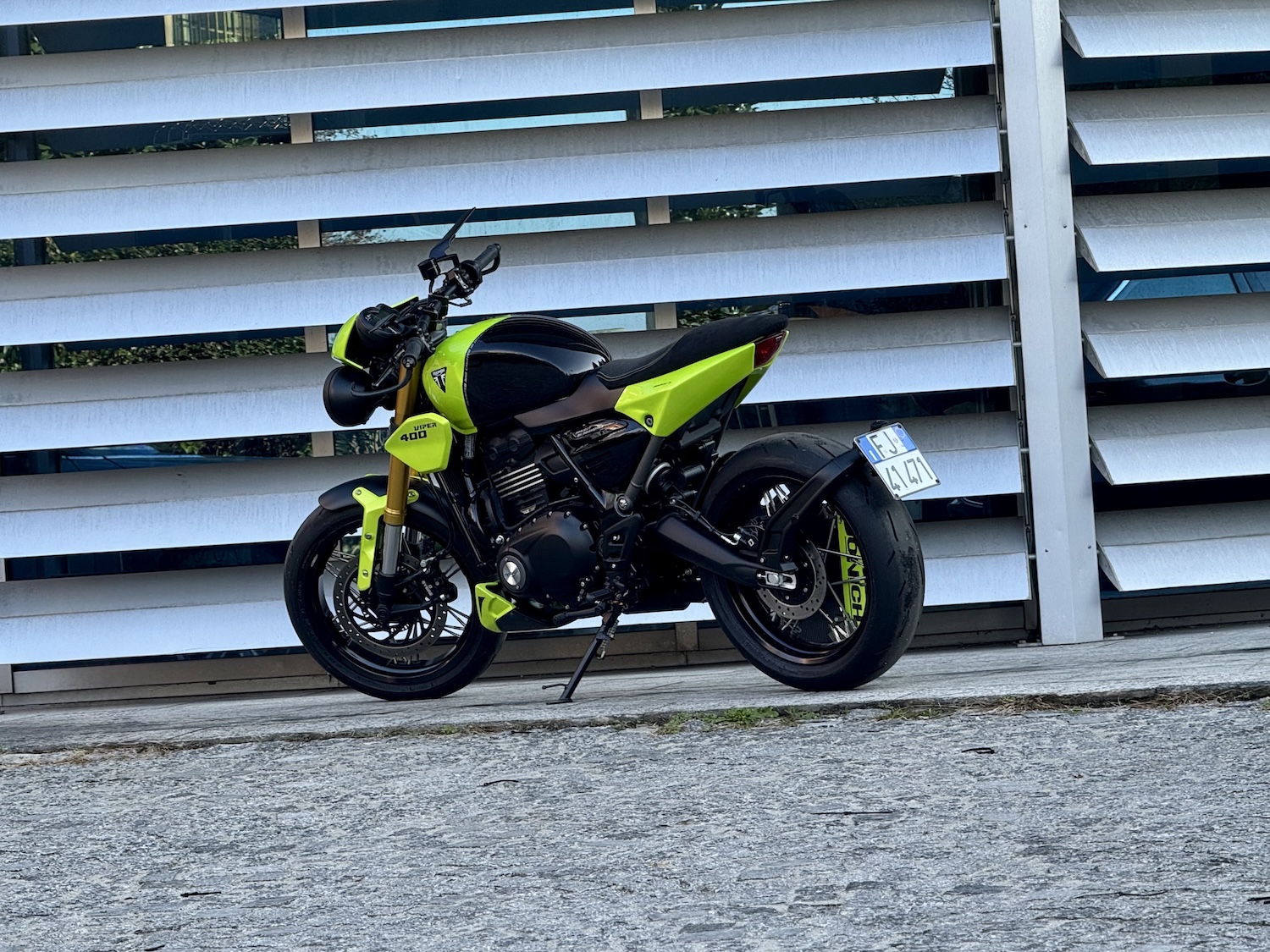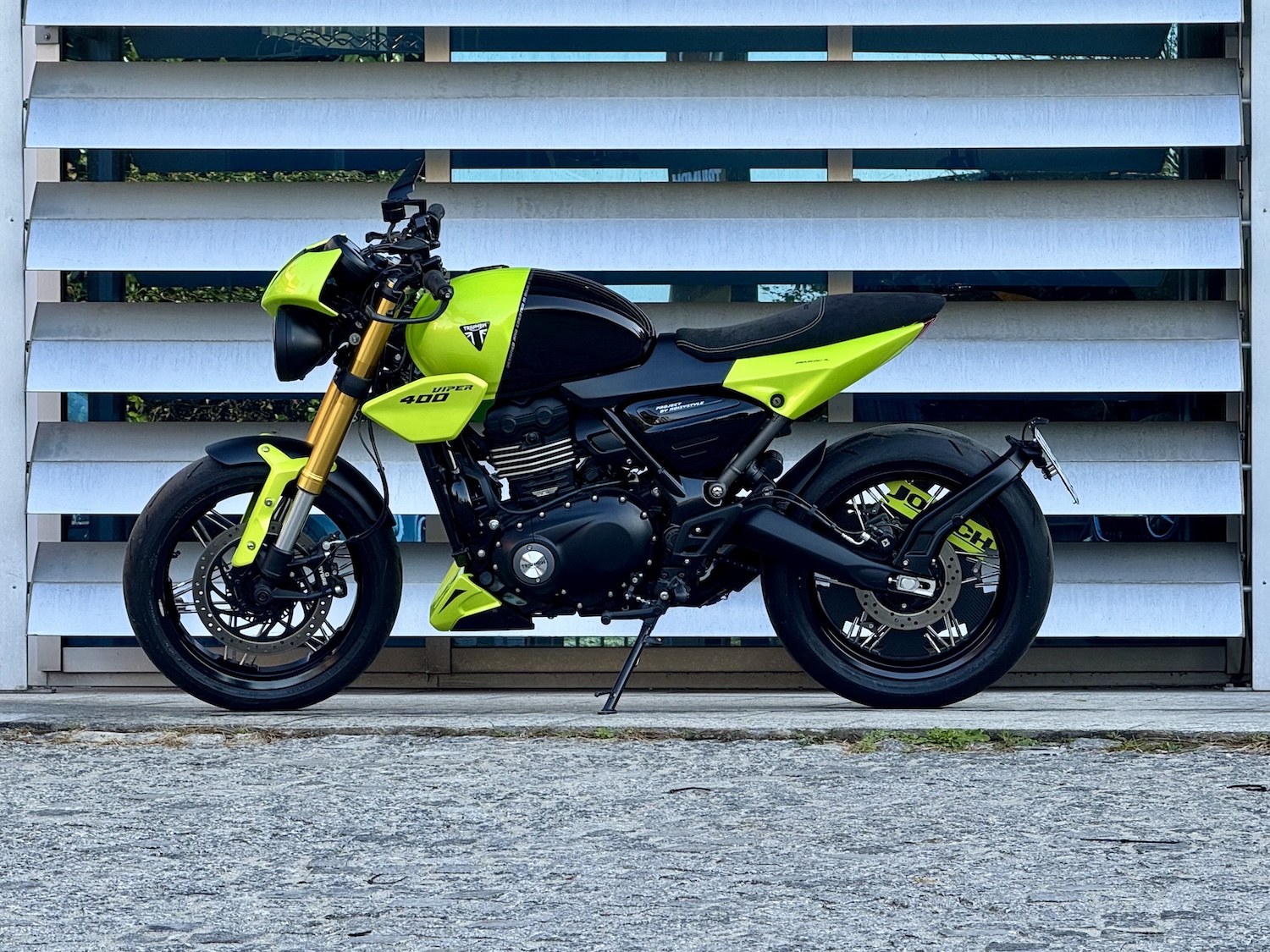 對於資深的凱旋車迷來說,第一眼看到 Viper 400 絕對會會心一笑,甚至熱淚盈眶。那個經典的「Roulette Green」輪盤綠烤漆,直接把時光拉回了 Speed Triple 最輝煌的年代。