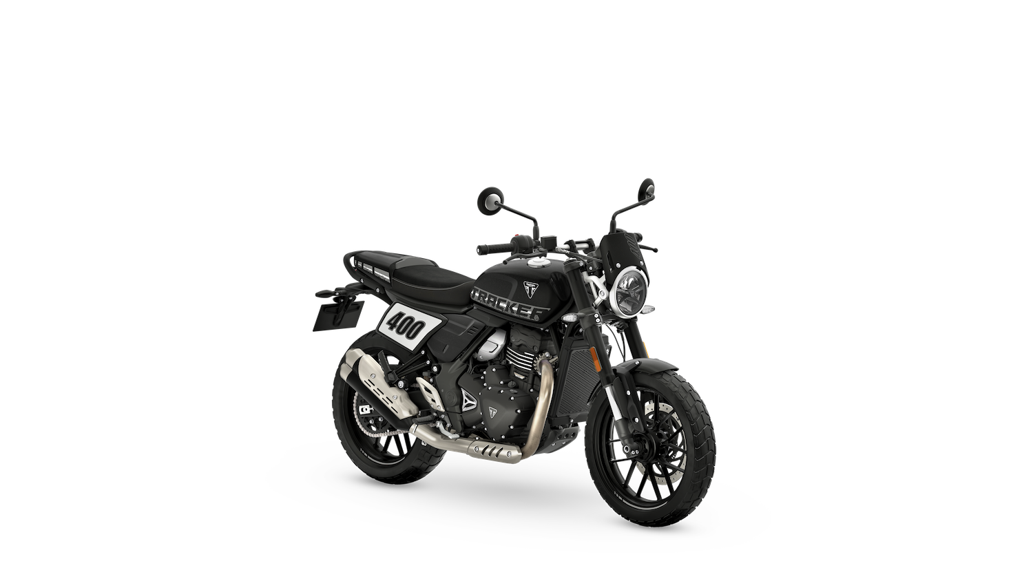 底盤與配備方面,Tracker 400前方搭載43mm的黑色陽極處理倒立式大活塞前叉(Big Piston Forks),擁有140mm的作動行程,後方則是有預載可調的中置避震器 。電控系統維持Triumph一貫的高水準,電子油門、滑動式離合器、可切換的循跡防滑系統(TCS)以及ABS全都是標準配備。