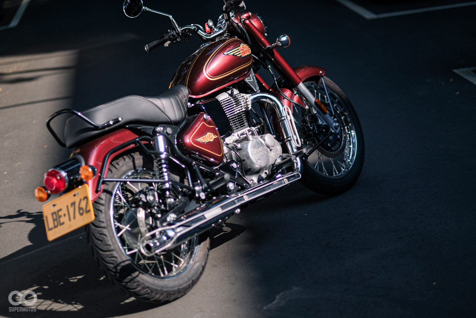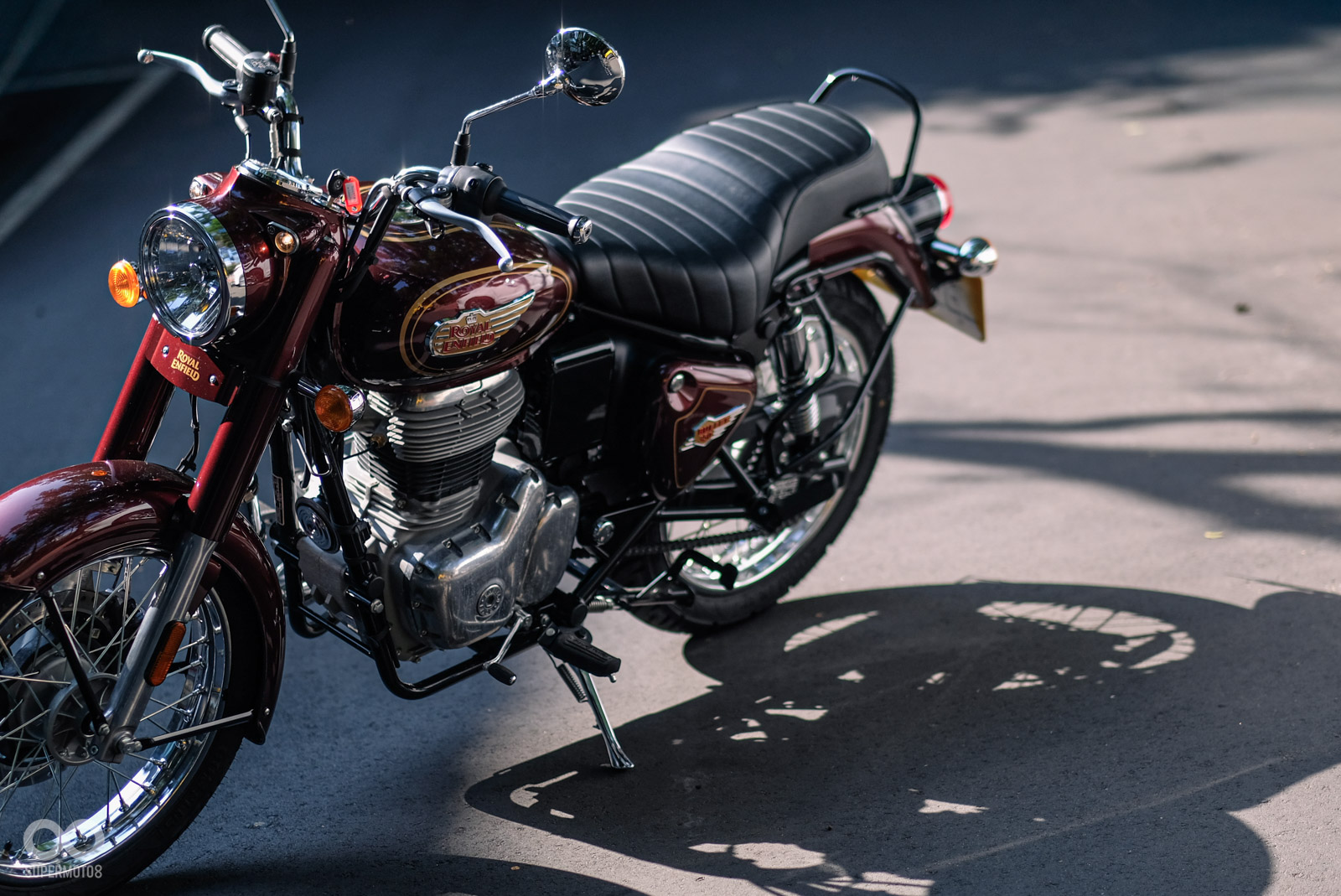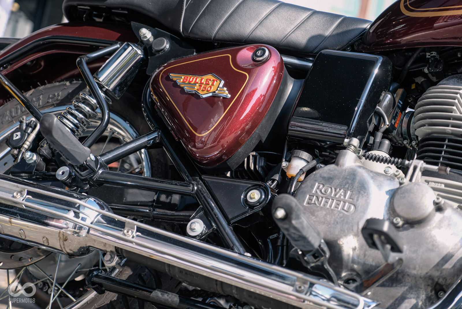 Bullet 350的油箱塗裝質感相當出色,在太陽下顯現出金光閃閃的視覺效果