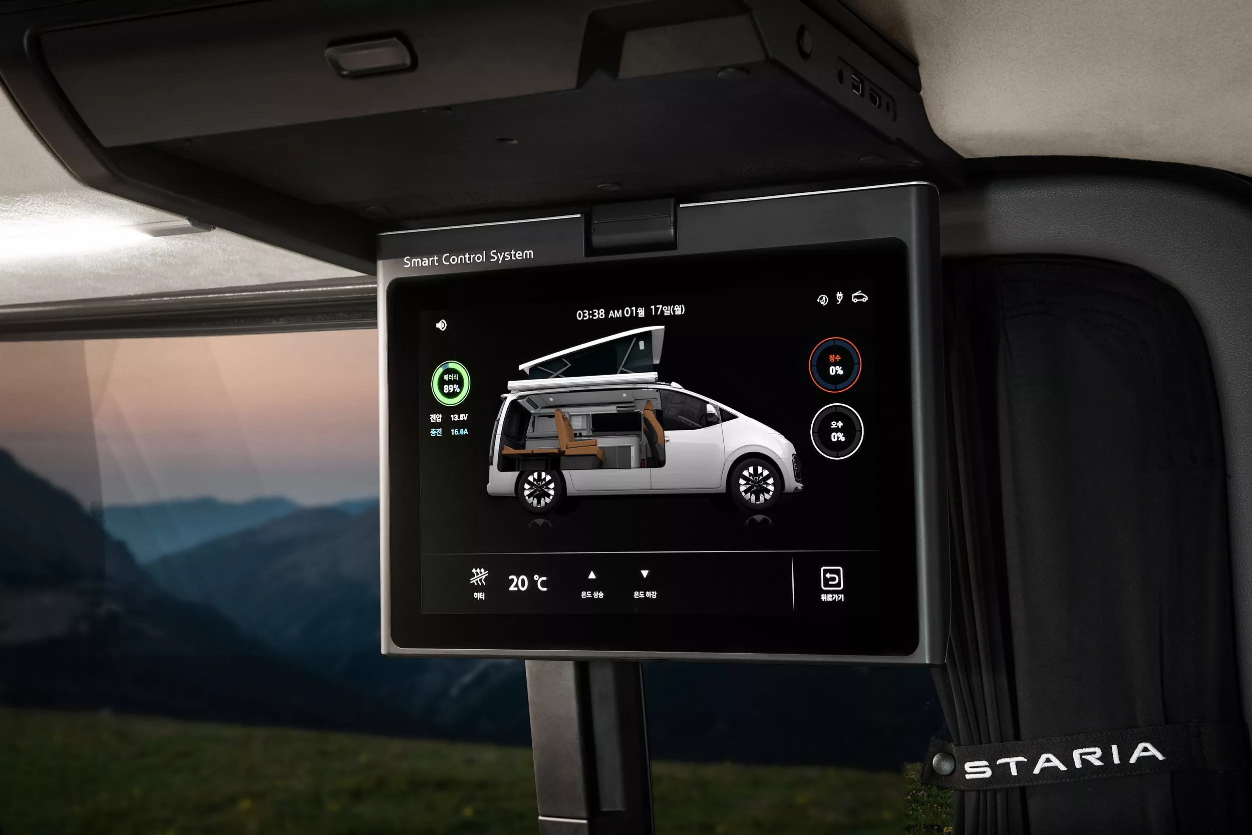 這款概念車並非簡單的露營改裝,而是由Hyundai全新設計的一套露營生活整合方案,展示了汽車與戶外生活方式結合的未來可能性。其最顯眼的改裝部位是車頂與車側結構,Staria Camper配備了電動升降車頂,搭配可自動伸展的遮陽篷,專為長時間停駛露營而設計。與傳統改裝露營車常見的加裝式頂蓬截然不同,此車頂被整合到車身設計之內,在提高內部天花板高度、擴充車內空間同時,維持了良好的車體空氣力學表現,避免高速行駛時產生過多風噪與氣流干擾。