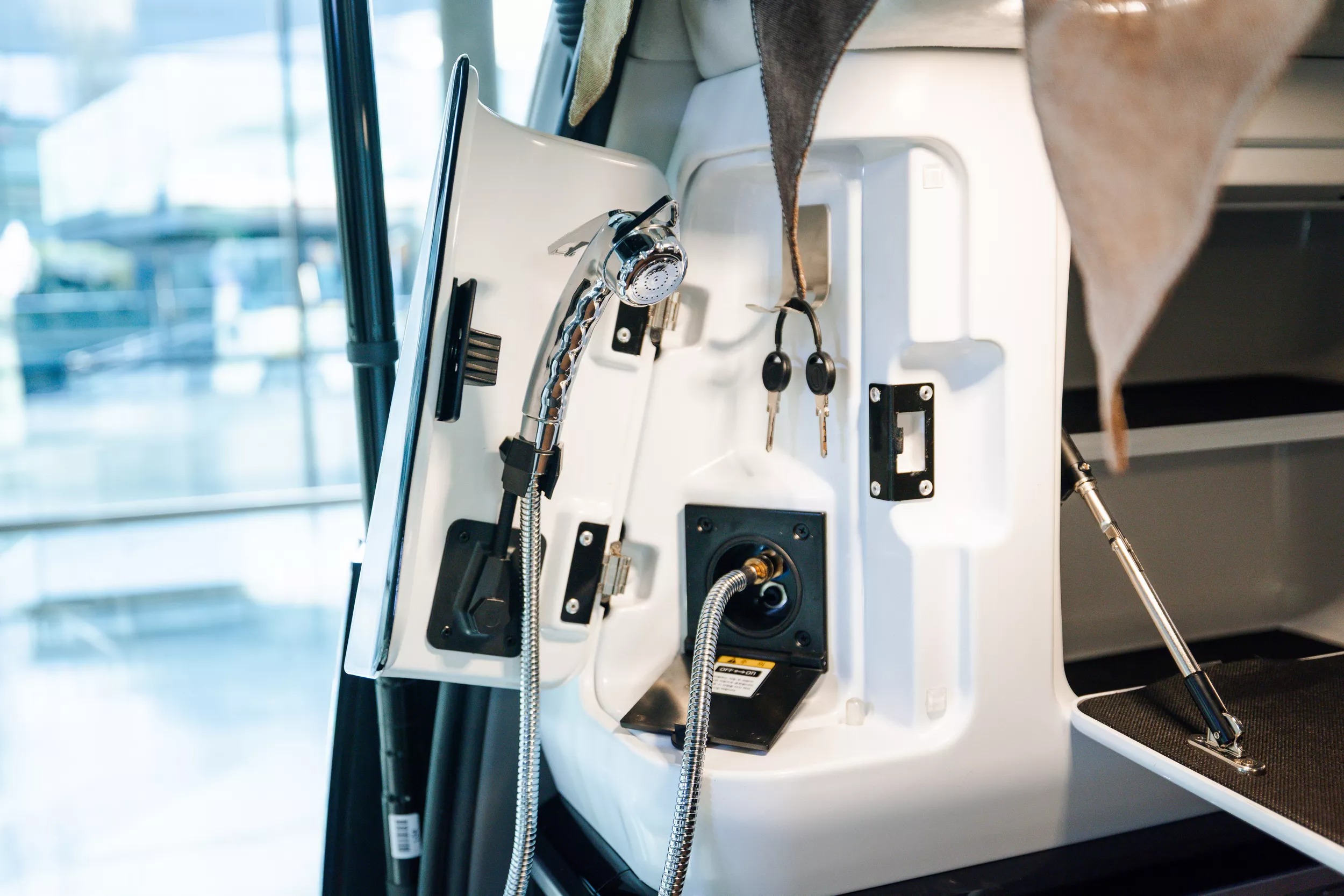更讓人驚喜的是,該概念車在車內還配置了洗滌用水槽、折疊式工作台與36升的小型冰箱,這意味著車主不必再回到露營基地或外部設施,就能在車內完成簡單的烹飪與清潔工作。此外,駕駛座旁還設有可旋轉的前乘客座椅,以及一套完整的空調控制系統,即便在寒冷的露營夜晚,車內依舊保有溫暖與舒適。
