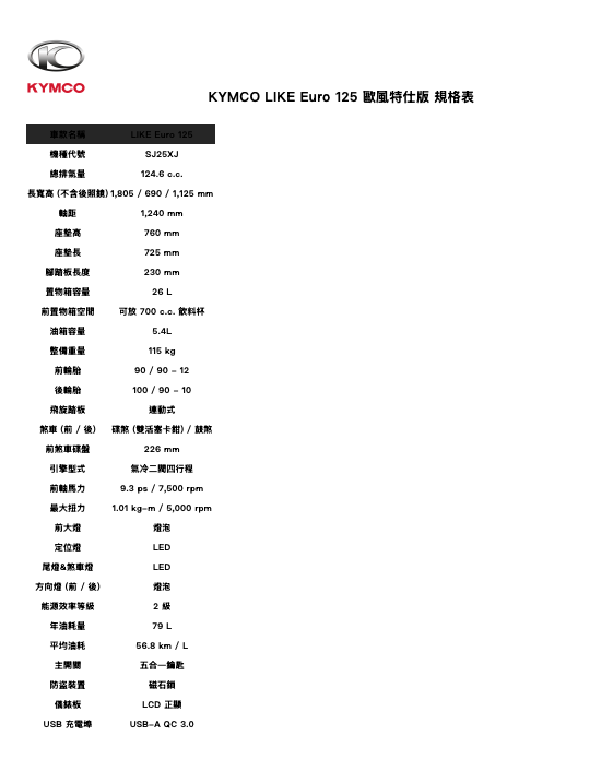 Like 家族新成員「Euro歐風特仕版」復古大燈新增鍍鉻燈罩、前斜板新增鍍鉻飾板與新款鋁合金後扶手,詮釋歐風更到位,時尚態度就是低調奢華的質感與細節都不馬虎的個人品味。Like 家族的「實用主義、經典不敗」重新詮釋出「時尚新高度」:「Euro歐風特仕版」新增QC 3.0充電功能,擁有市場最長舒適座墊「再加長」;「Like Euro125歐風特仕版」提供晨暮綠、珍珠黑、珍珠白三色。(車款詳細介紹請洽 KYMCO 光陽官網:www.kymco.com.tw)
