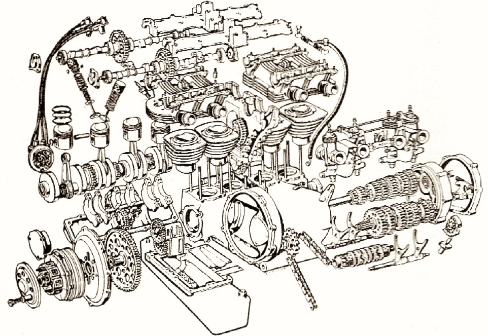 這具由 Giovanni Benelli 在 1939 年設計的引擎簡直是藝術品。它採用短行程設計(缸徑 45mm x 行程 42mm),壓縮比高達 12:1,轉速可達在當時驚為天人的 10,000 rpm,這具引擎能輸出 52.5 hp 的馬力,在測試中跑出 235 km/h 的極速。