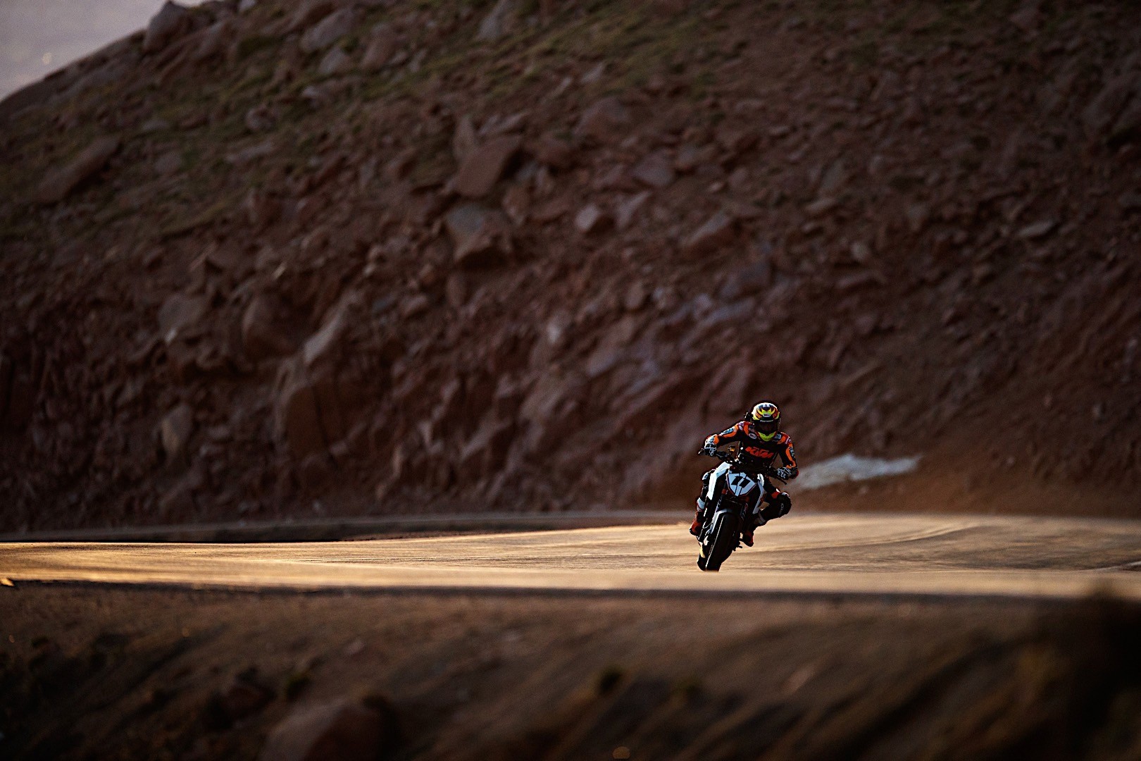 在派克峰爬山賽中,賽事級別有非常多種,而在兩輪的賽事當中,分別有Lightwieght(單缸或雙缸)、Middleweight(排氣量849c.c.以下)、Heavyweight(公開組)、電動摩托車以及Challenge組別,這次打破記錄的KTM 1290 Super Duke R是屬於競爭最為激烈的 Heavyweight組別,騎著它的是車手Chris Fillmore,以9 分49秒625的成績刷新了先前由Kawasaki ZX-10R所保持的9分58秒687,再次為這輛猛暴的運動街車寫下歷史的一頁。
