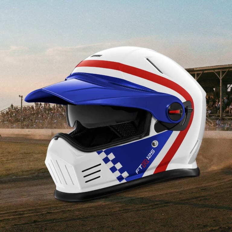 外觀採用經典的紅白藍三色塗裝,配備專屬 FTR 字樣小風鏡與側邊號碼牌飾蓋。