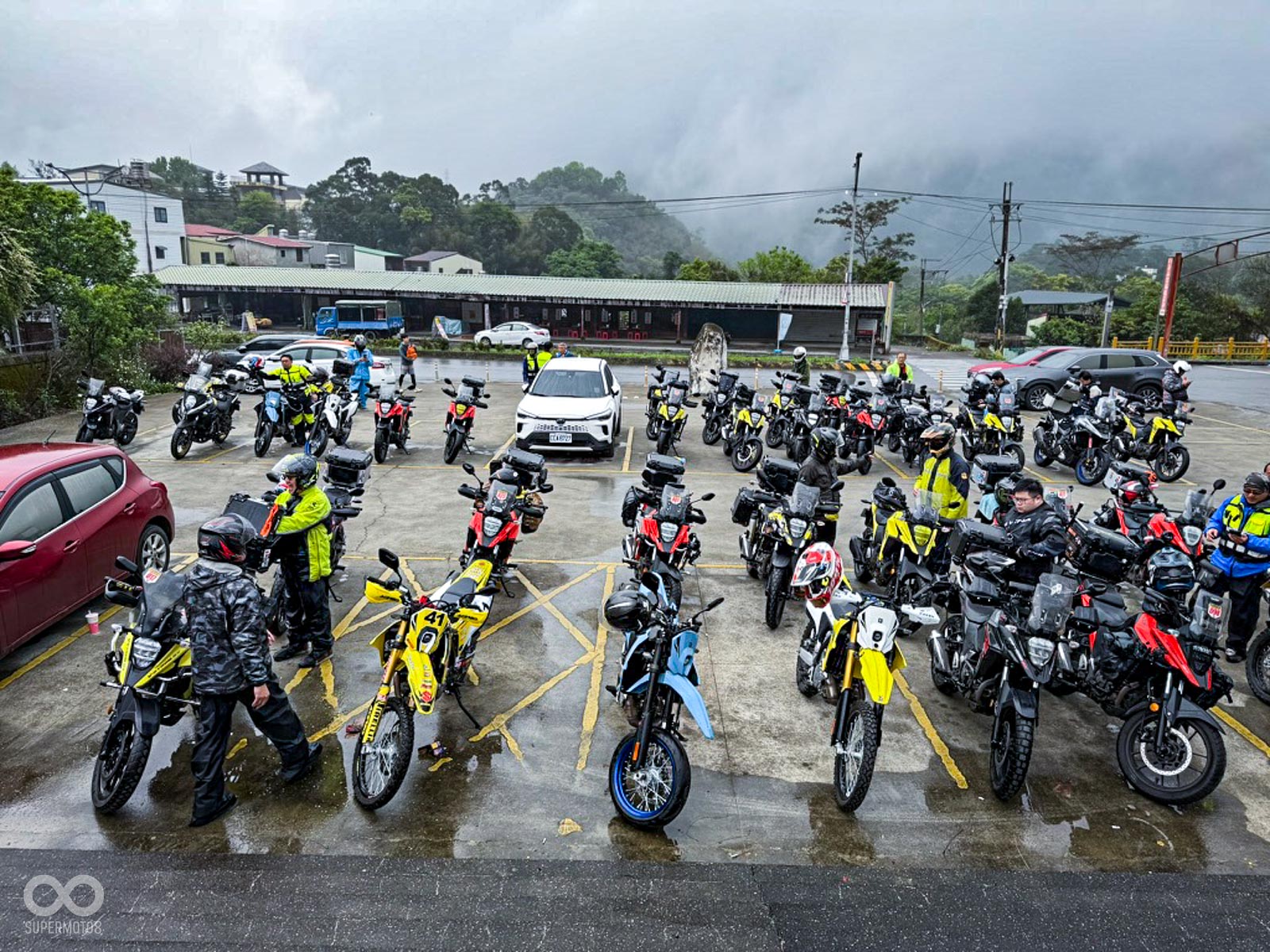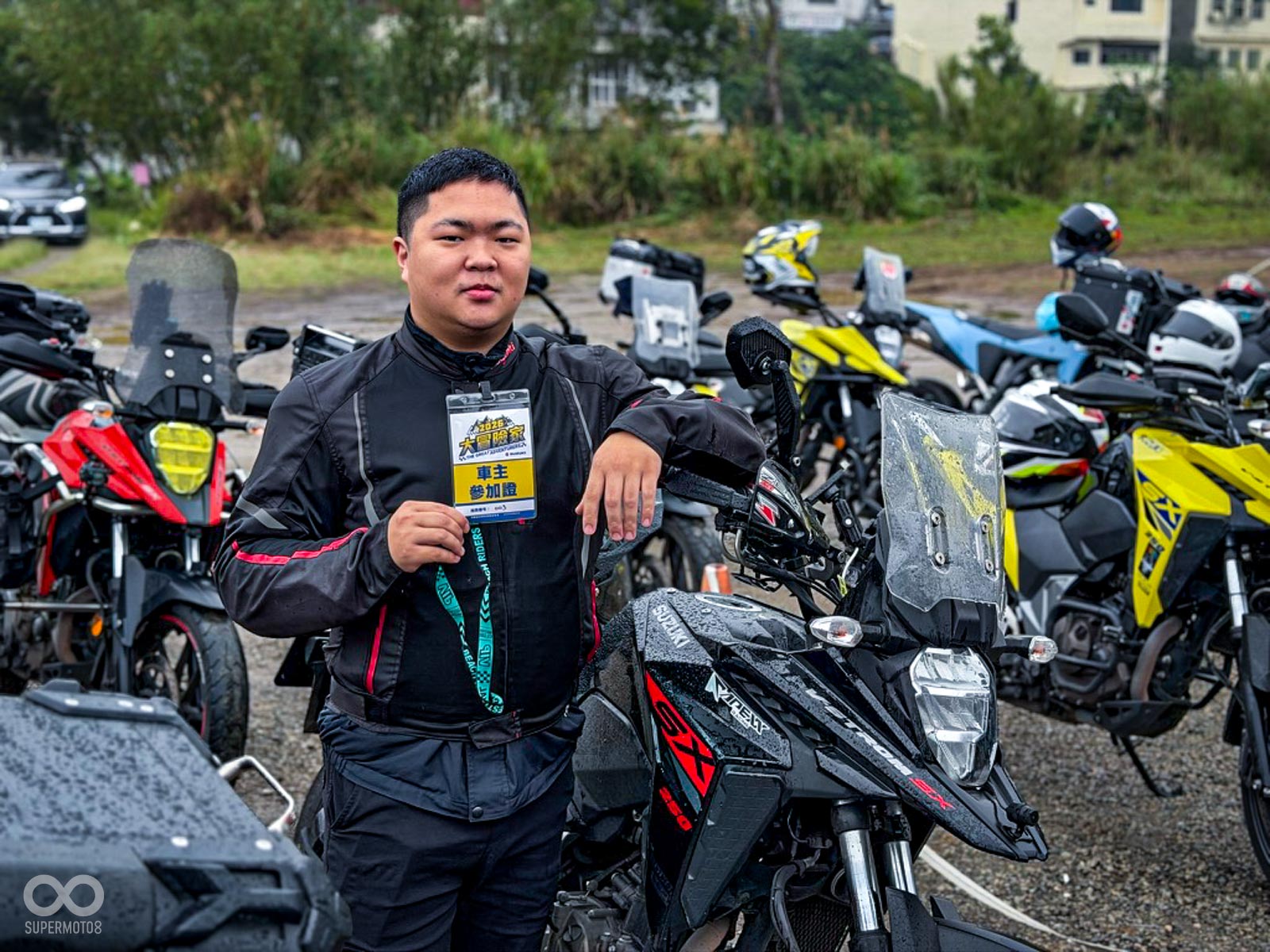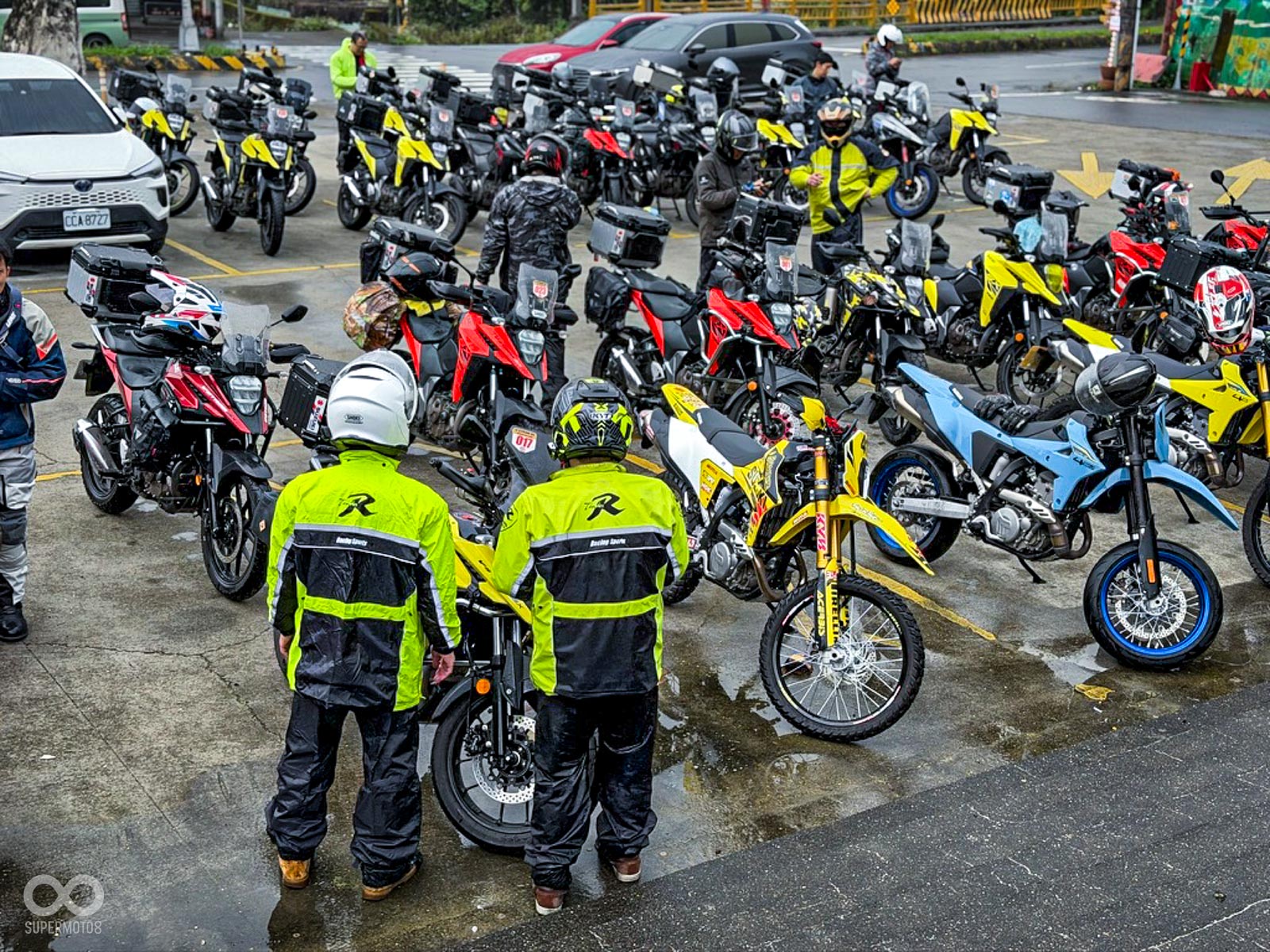 雙雄齊聚: 約 80 位 DR-Z 與 V-STROM 車主無懼風雨集結,展現越野本格派與全能冒險系平分秋色的強大凝聚力。