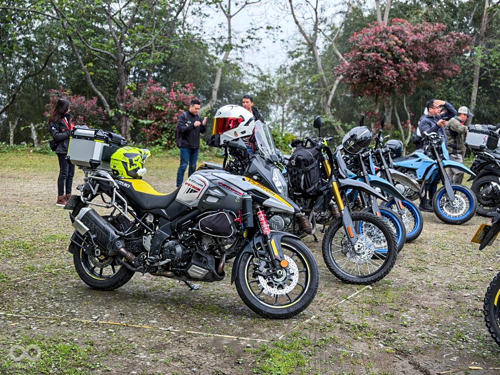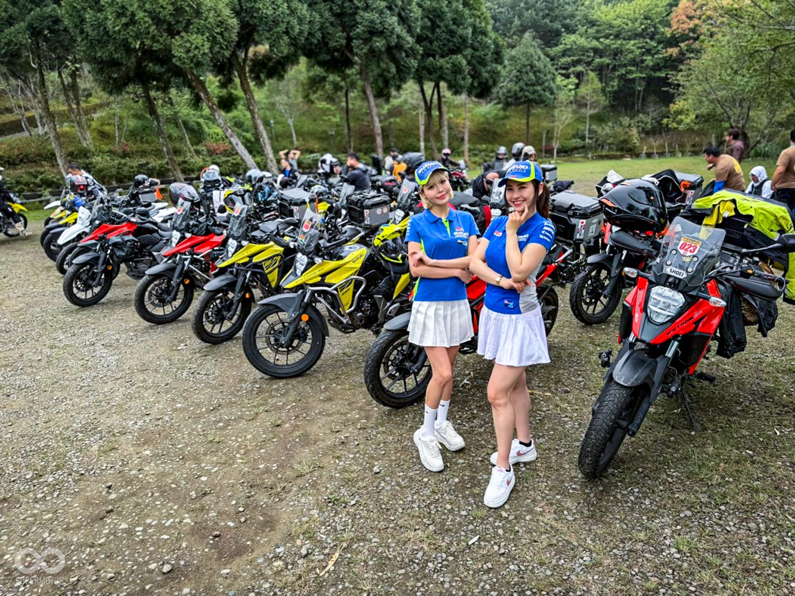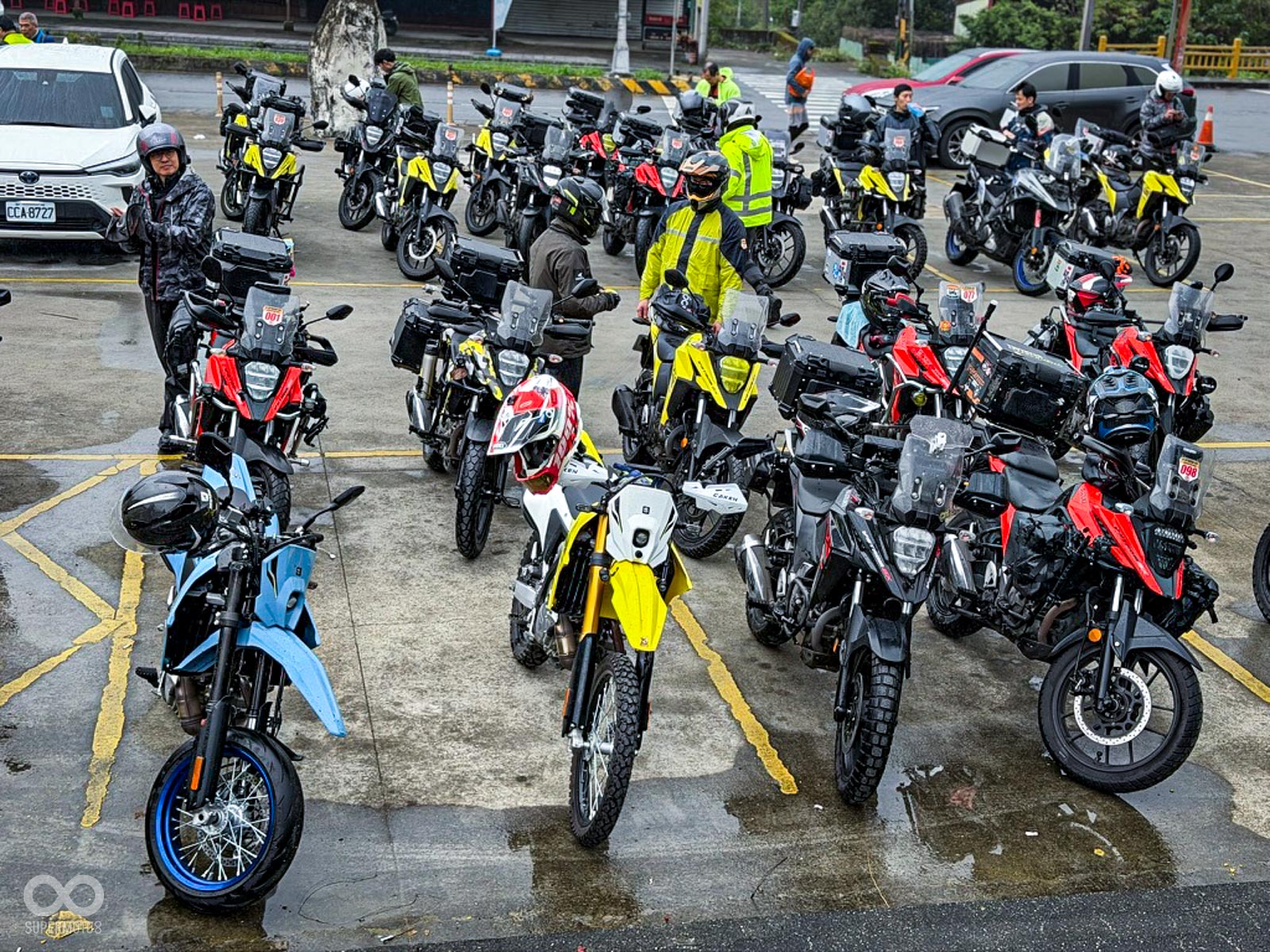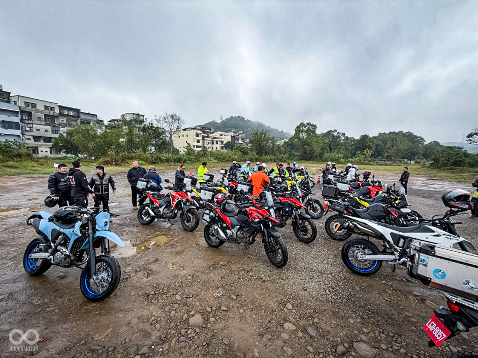 雙雄齊聚: 約 80 位 DR-Z 與 V-STROM 車主無懼風雨集結,展現越野本格派與全能冒險系平分秋色的強大凝聚力。