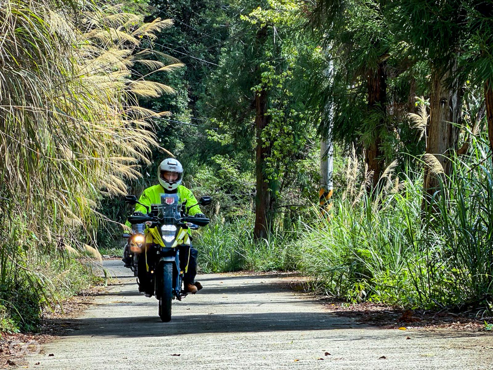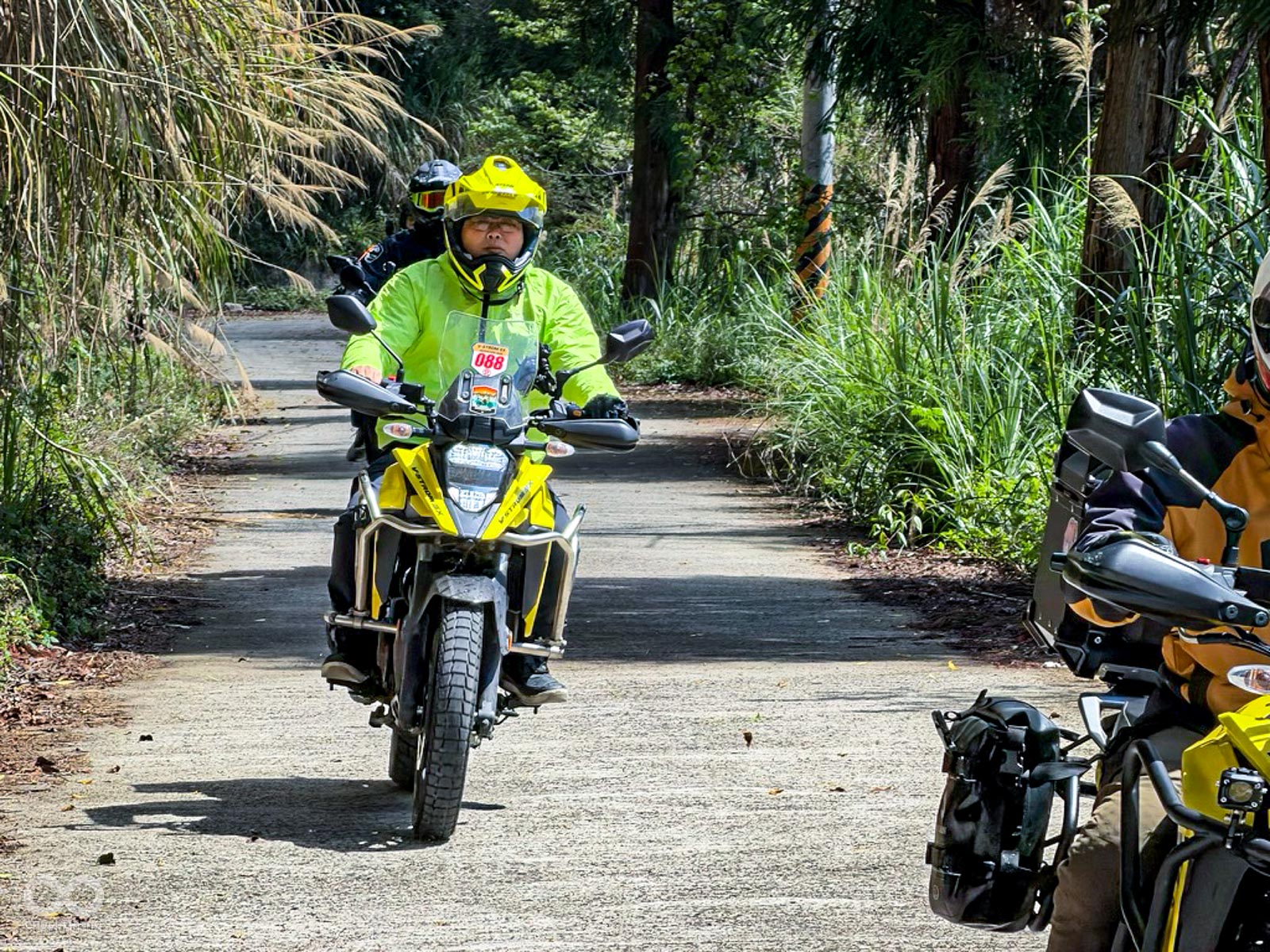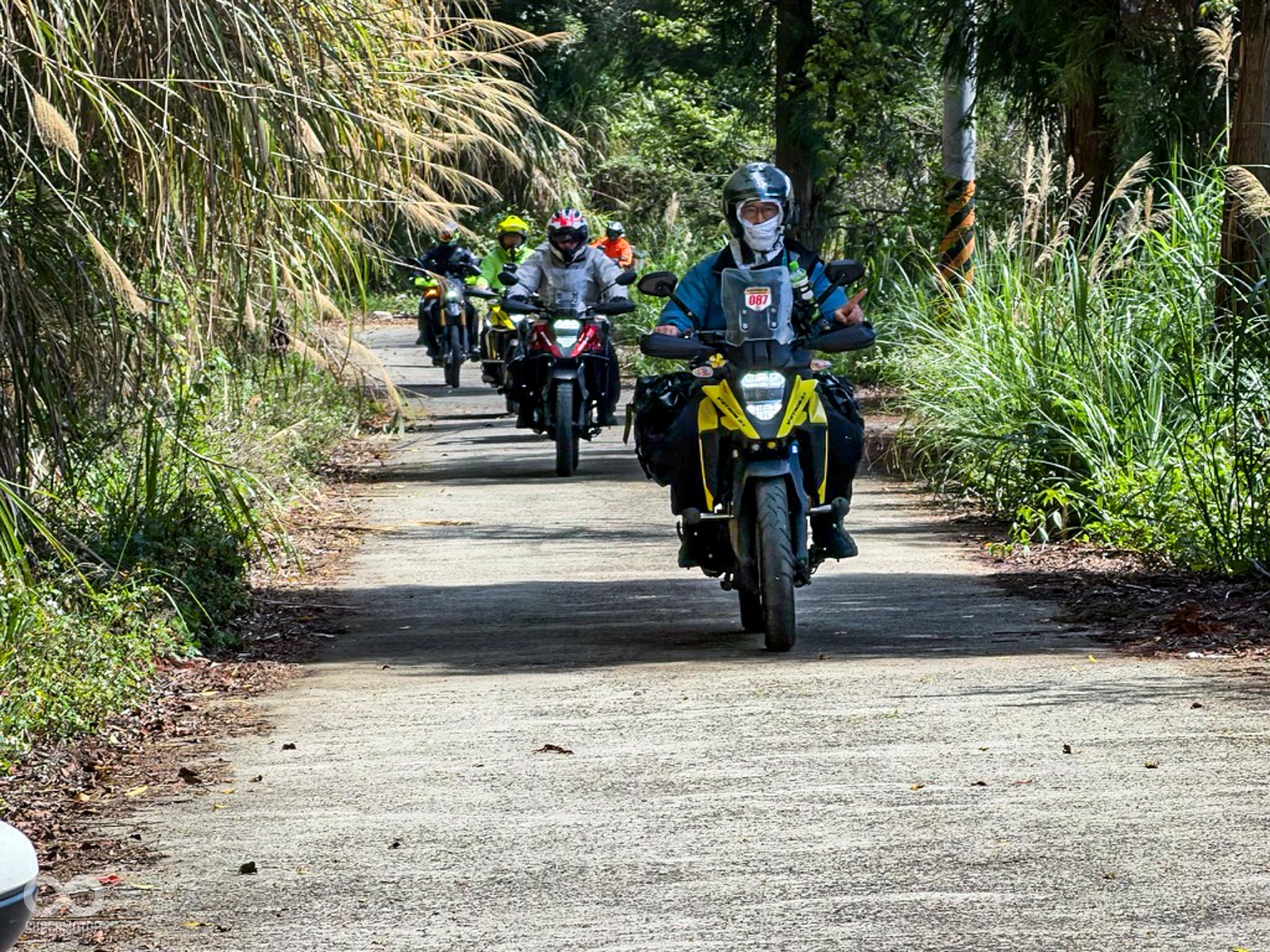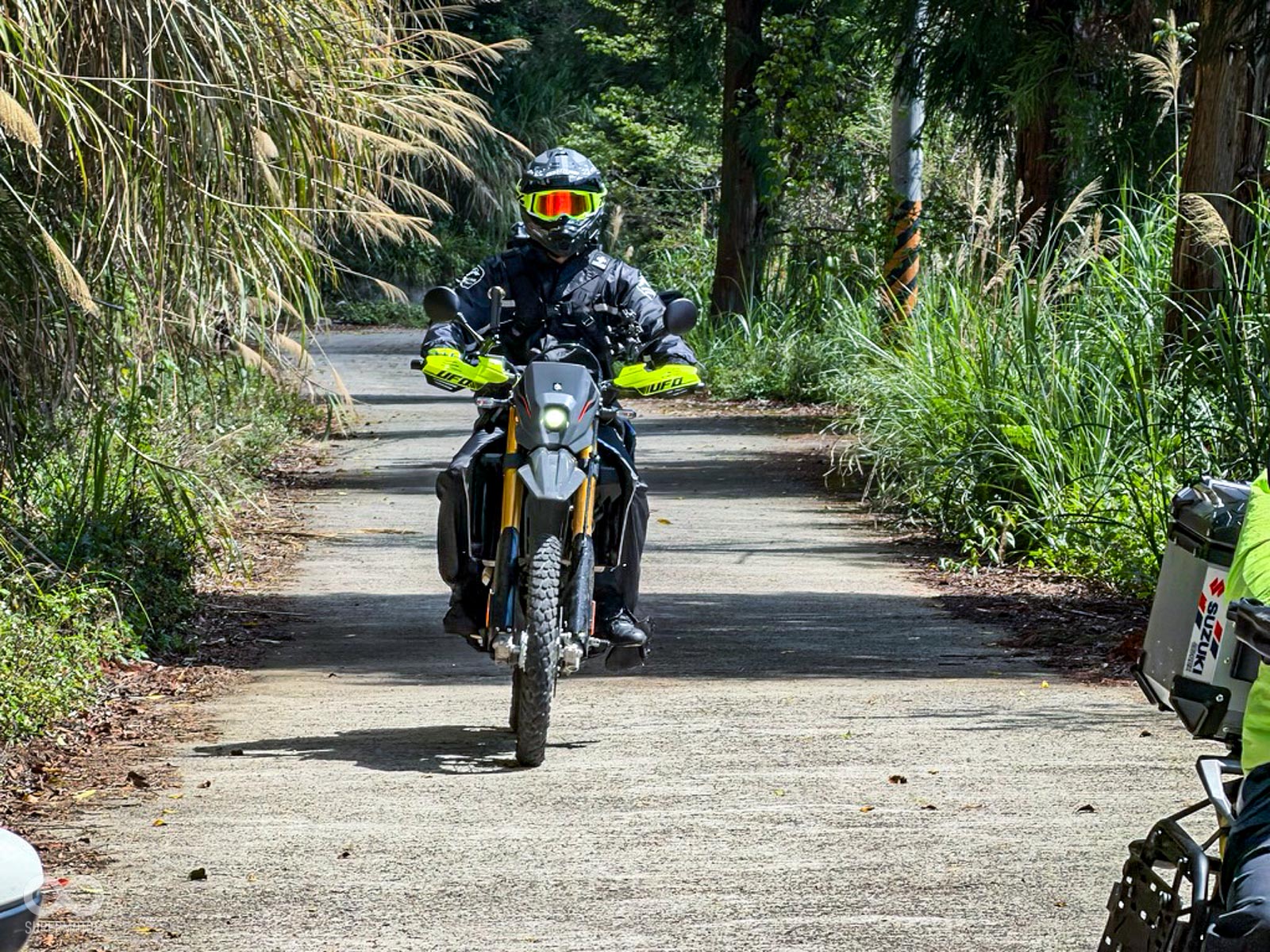 隨後進入充滿挑戰性的馬美道路,這段充滿碎石與窄彎的路徑,正是檢驗兩大車系「冒險基因」的最佳舞台,DR-Z 以其全可調懸吊輕鬆吞噬坑洞,展現出林道王者的自信;而 V-STROM 則憑藉出色的低轉扭力與電控輔助,在起伏間展現優雅且從容的過彎姿態。