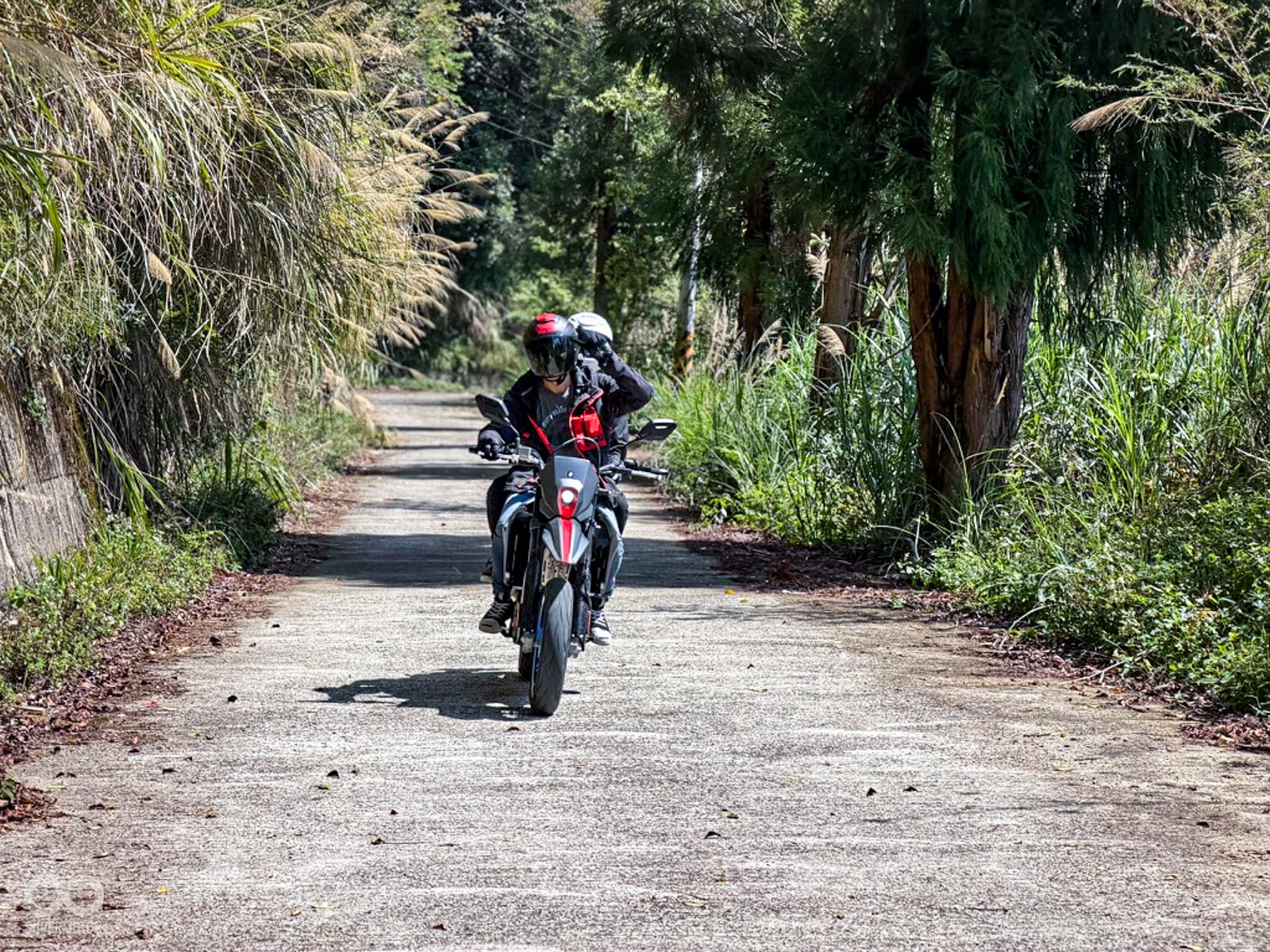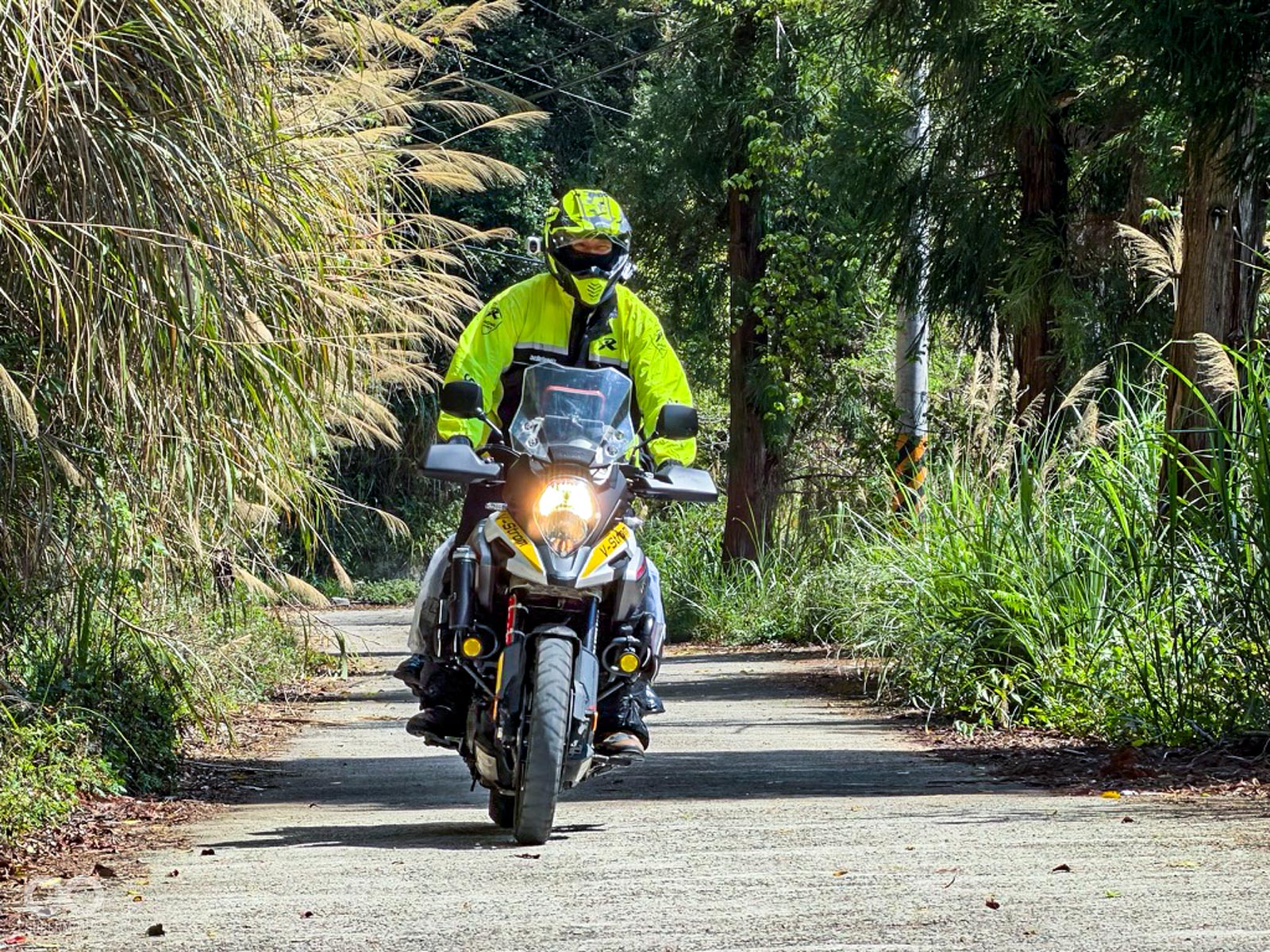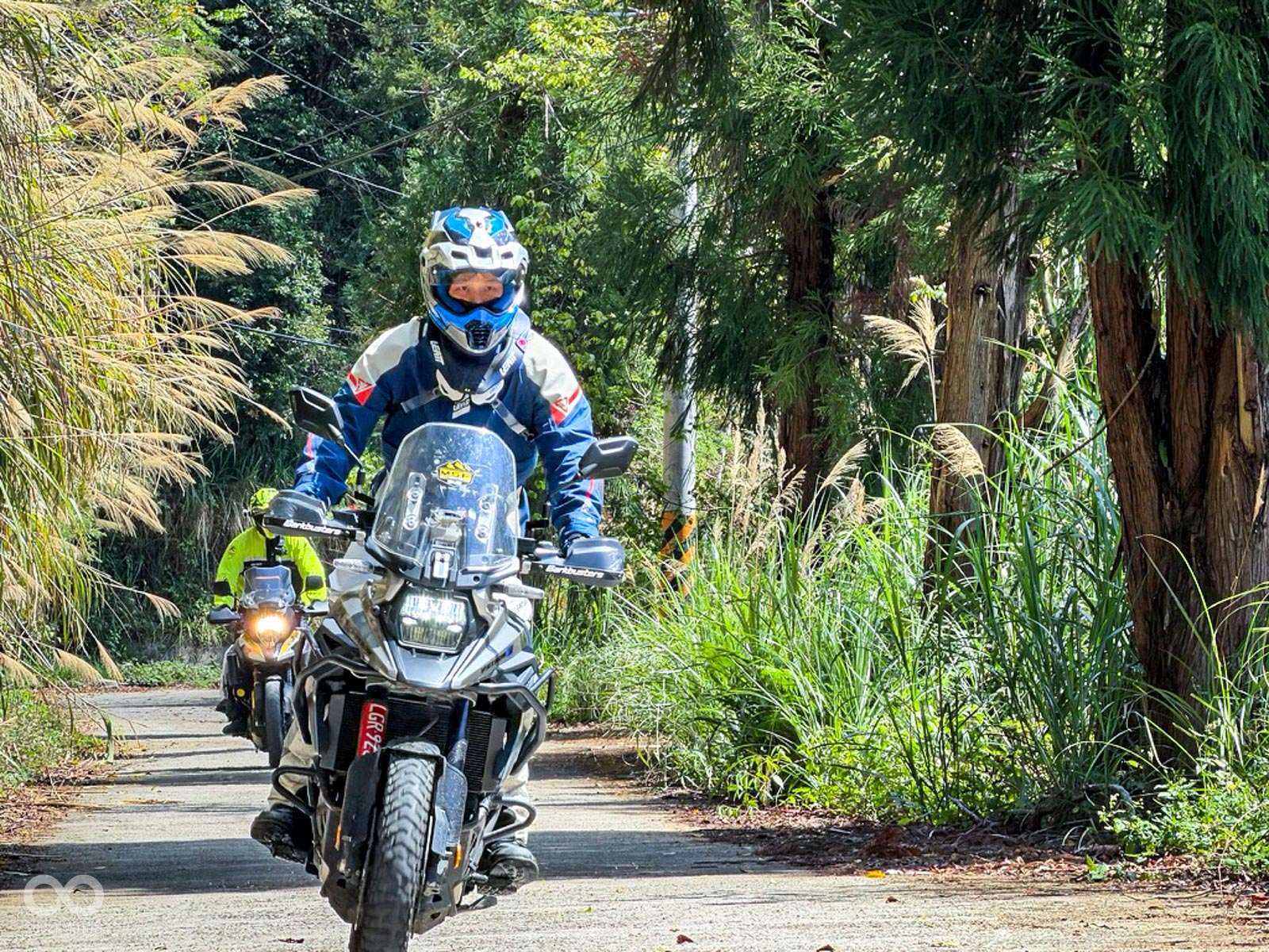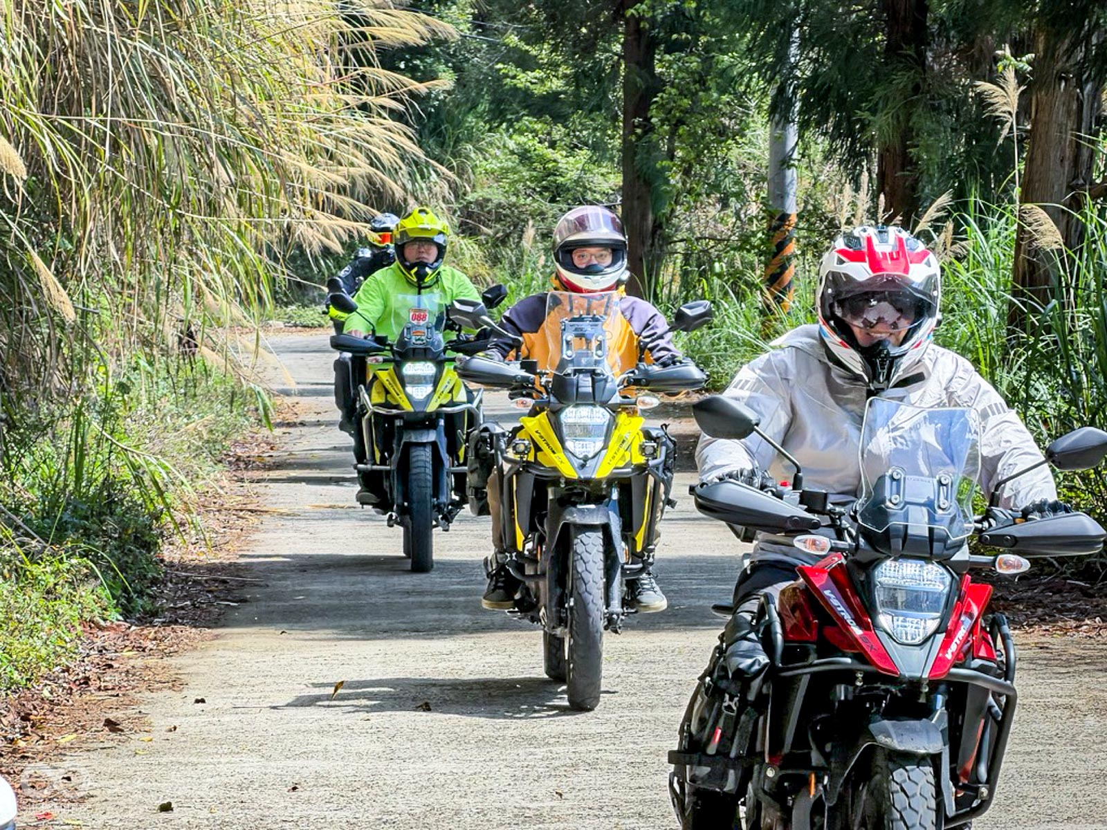 隨後進入充滿挑戰性的馬美道路,這段充滿碎石與窄彎的路徑,正是檢驗兩大車系「冒險基因」的最佳舞台,DR-Z 以其全可調懸吊輕鬆吞噬坑洞,展現出林道王者的自信;而 V-STROM 則憑藉出色的低轉扭力與電控輔助,在起伏間展現優雅且從容的過彎姿態。