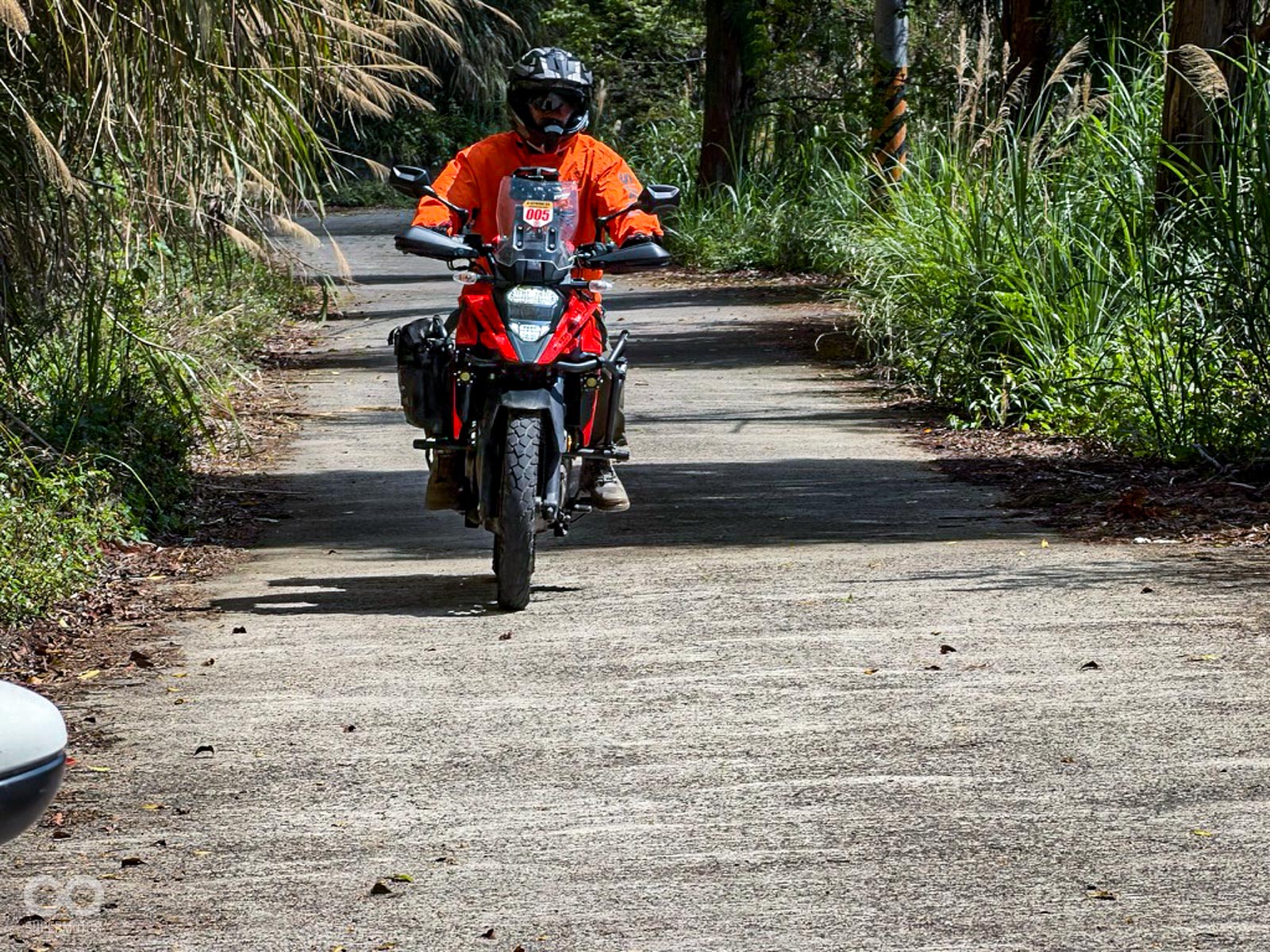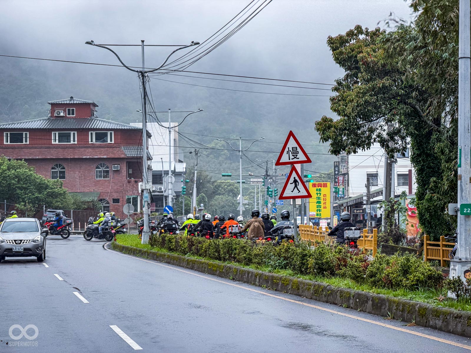 車友們陸續抵達、完成活動報導後,隊伍也分為兩個梯次,分批挺進羅馬公路,整段山路被深不見底的大霧封鎖,視線所及僅餘前車微弱的尾燈,整段路程蒙上了一層極度神祕且肅殺的面紗;DR-Z 的車友們屏氣凝神,利用輕巧的車身靈魂在霧氣中穿梭,而 V-STROM 的騎士則展現了多功能車的沉穩,在濕滑的路面上保持穩定的節奏。