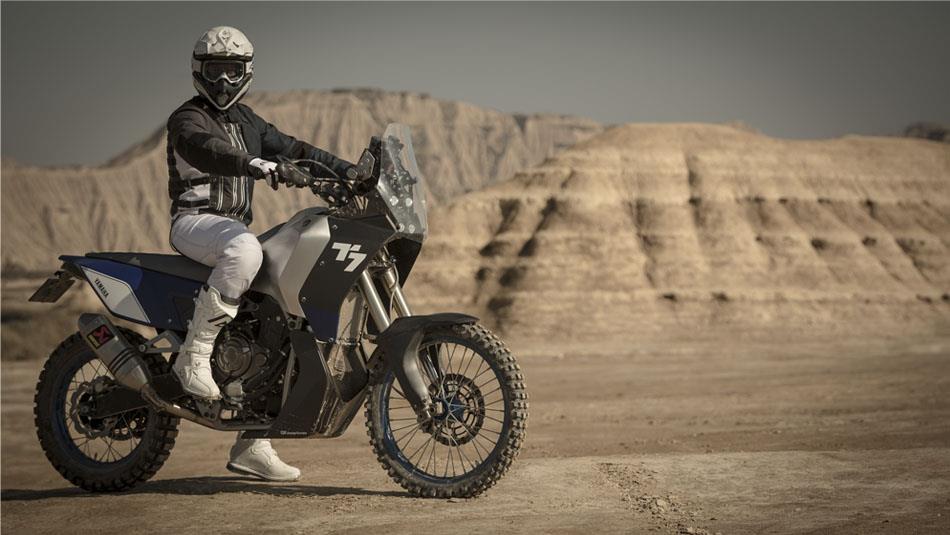 照片中的車披上了一塊黑布,層疊頭燈和若隱若現的車尾線條讓人直覺想到T7,車身和車架細節雖然都蓋住,不過約略可以看出與概念車的設計不同。引擎明顯是來自MT-07的74hp並列雙缸。
