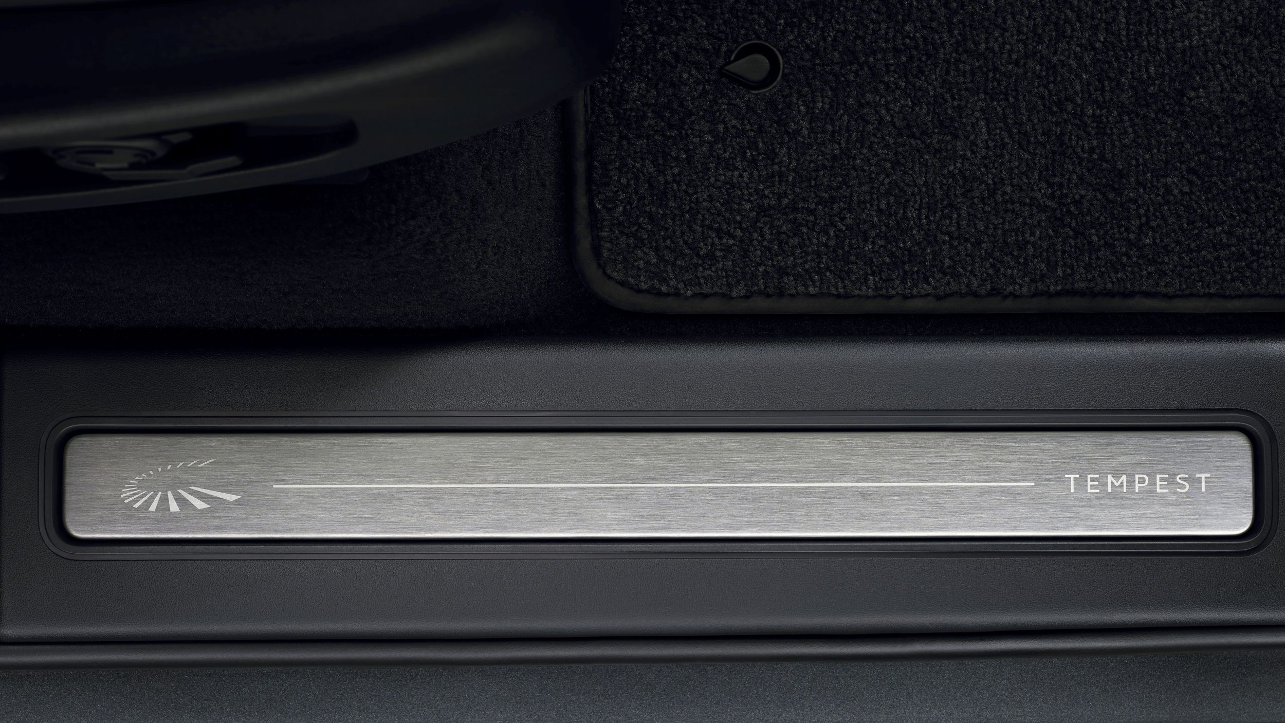 象徵力量與動感的 Tempest 螺旋徽飾,運用於 B 柱、金屬門檻踏板、迎賓照明與內裝細節,並且搭配鋁質暗影飾板與 Windsor 溫莎皮革內裝營造奢華質感。