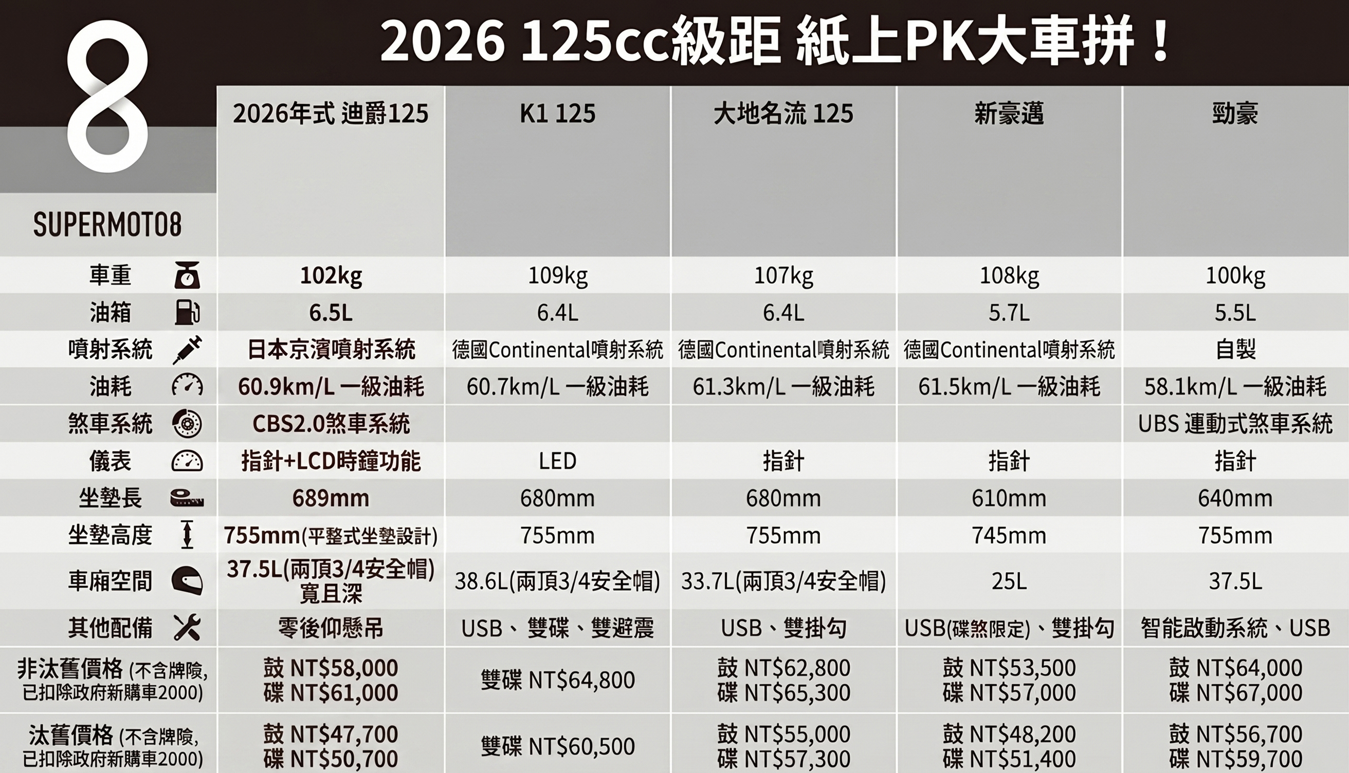 綜合比較下來,2026 年式迪爵 125 或許沒有最炫目的電子配備,但它精準地放大了油箱、坐墊長度與置物空間這些通勤剛性需求,再輔以極具競爭力的汰舊換新方案,確實是一台將務實與均衡點滿的狠角色。