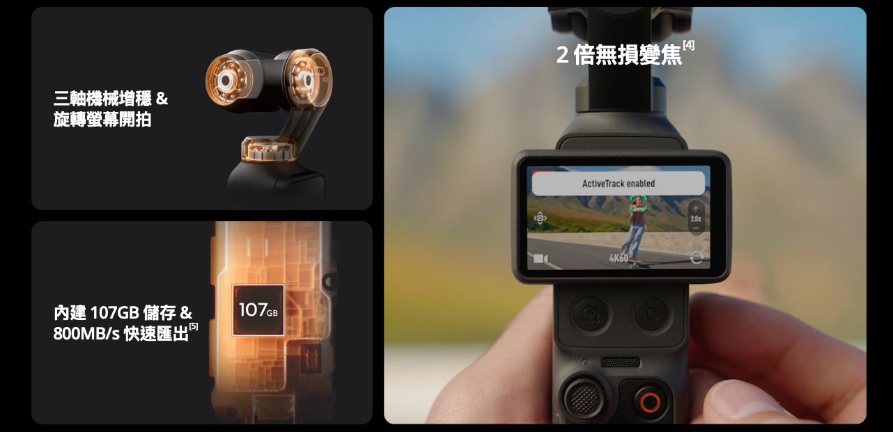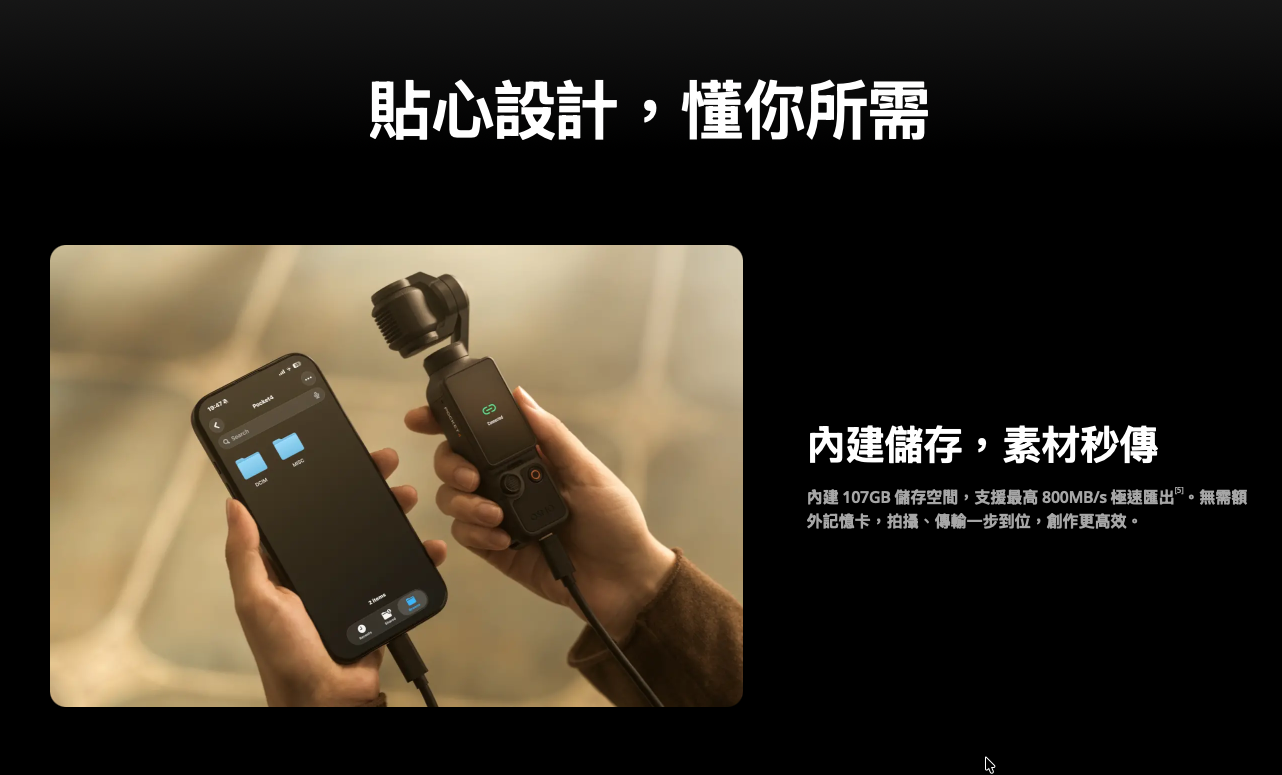 對於常常忘東忘西的人來說,內建 107GB 的儲存空間簡直是救命恩人,完全不用怕興沖沖出門跑山或旅行,結果到了現場才發現記憶卡插在電腦上沒帶,Pocket 4 直接解決了這個痛點,而且它支援 Wi-Fi 6 與 USB 3.1 高速傳輸,拍完直接傳到手機剪輯發限動,節奏快到沒朋友。