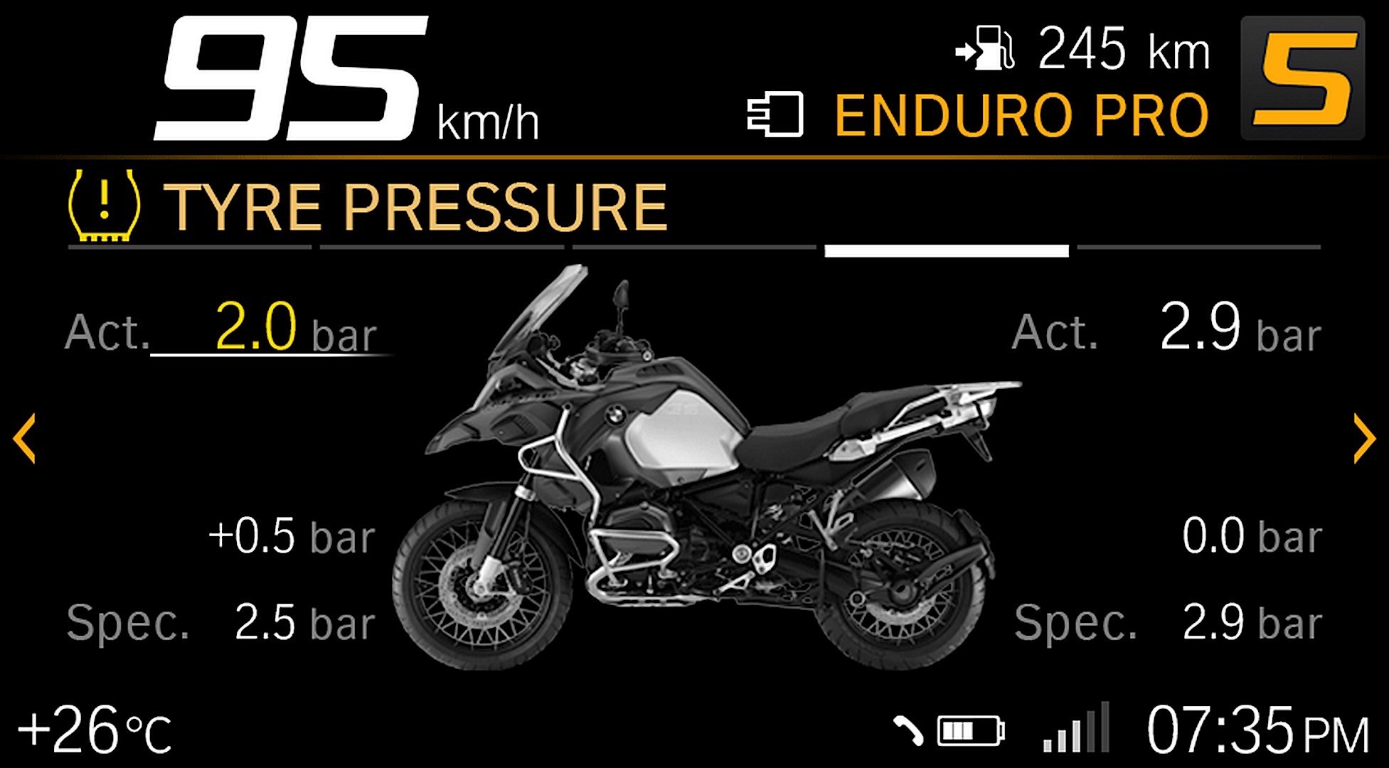 新的儀表也連結了胎壓顯示系統,清楚的顯示方式讓騎士可以知曉前後胎壓的正確數值,而且不會分散太多的注意力在閱讀太壓資訊,同時系統也會自動調整推薦你在相對情況下的建議胎壓,讓你可以在騎乘時更加順暢。當然如果你都不想要以上華麗的資訊,還可以使用傳統的儀表模式,就只會顯示轉速以及時速而已,一旁還有速限提醒,讓騎士更加安全便利。