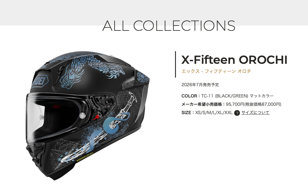 身為品牌旗下的頂級全罩式安全帽,X-Fifteen 不僅是賽道上的精密儀器,更是騎士個人品味的延伸,這款以日本神話「八岐大蛇」為主題的彩繪版本,在發表了黑藍配色後,近日再度公開了質感更為內斂的「消光黑×綠」新色,它將傳說中巨獸的威懾力,隱藏在冷冽的現代工藝色彩之中,預計於 2026 年夏季正式與騎士們見面。