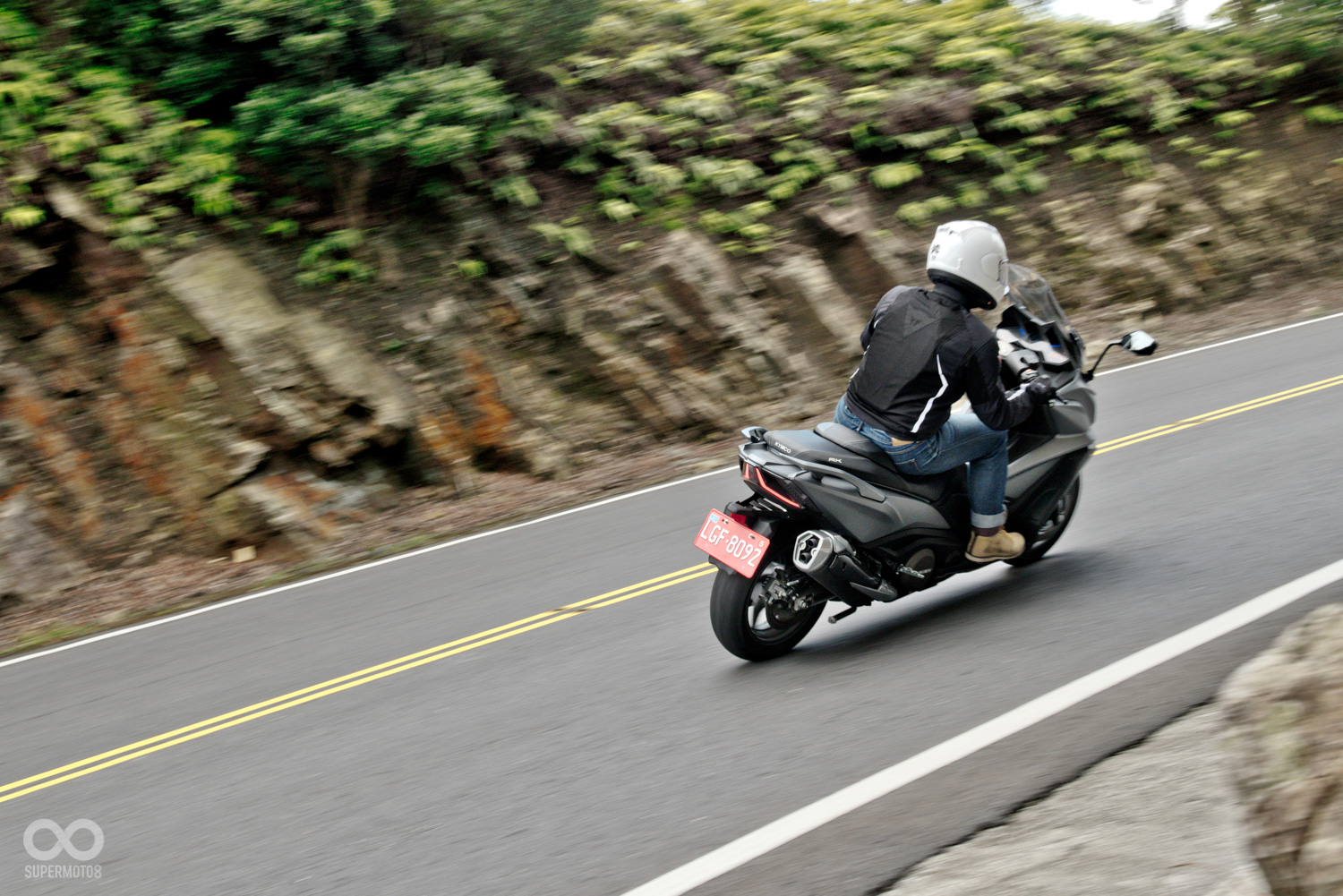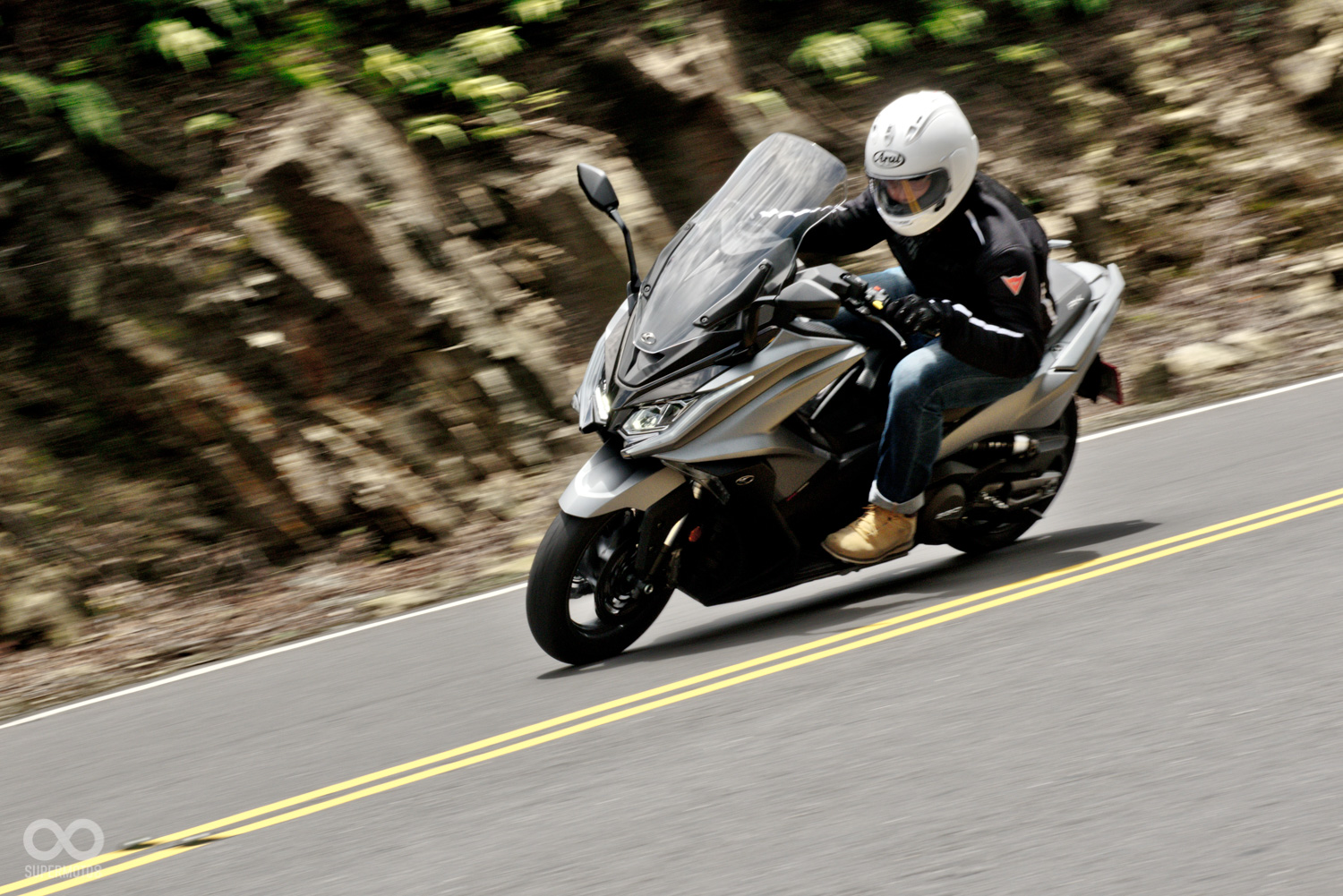 當時在金門試駕AK550時因為時間倉促,只能稍做淺嚐,而這次回到了本島自然不能這麼輕鬆的就放過它。跨上車我們來到了北臺灣最知名的台9線北宜公路,北宜公路前段多以中低速彎為主,在節奏明快的連續彎路段,AK550完美的車身配重為前後輪創造了優異的循跡性,搭配上調較得宜的懸吊,在車身快速左右翻轉輕鬆愜意游刃有餘。